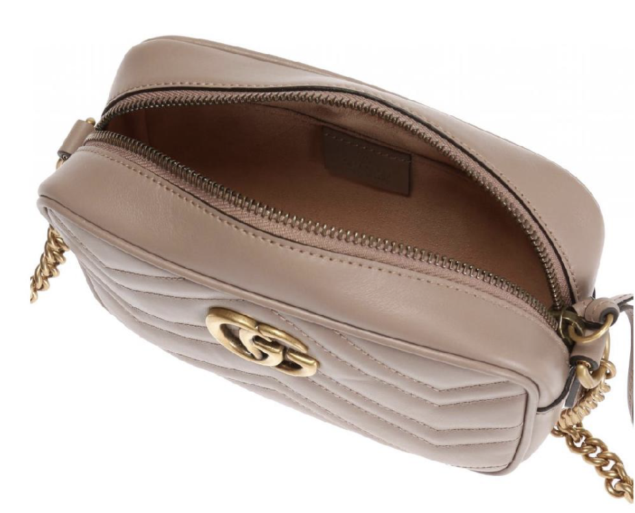 Вдохновленный летней атмосферой и пляжными клубами итальянского побережья, этот предмет является частью коллекции Gucci Lido. Сумка GG Marmont маленького размера на ремне-цепочке с застежкой-молнией сверху и фурнитурой в виде двойной буквы G. Ремень-цепочка с кожаной деталью для ношения на плече. Модель выполнена из стеганой кожи с геометрическим узором и двойной буквой G с обратной стороны.