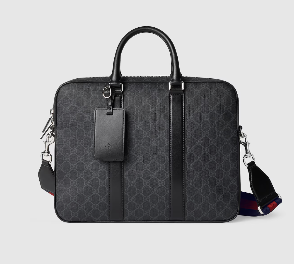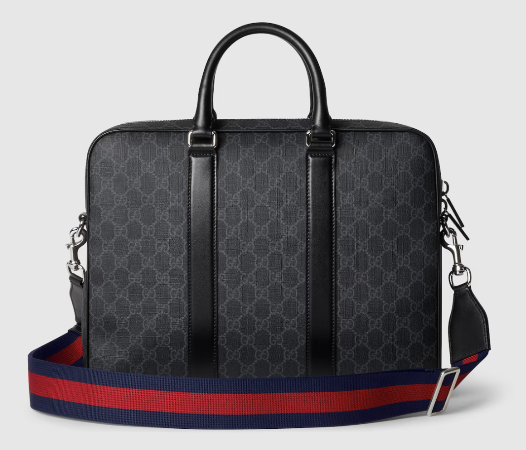 Фирменный холст GG Supreme остается вечнозеленым домом благодаря своим мягким и податливым качествам. Изготовленный из ткани из микрофибры с покрытием, здесь он появляется в полностью черном варианте, чтобы определить этот портфель. Тональная кожаная отделка завершает стиль, в то время как всплеск цвета появляется в виде архивной веб-полосы.
