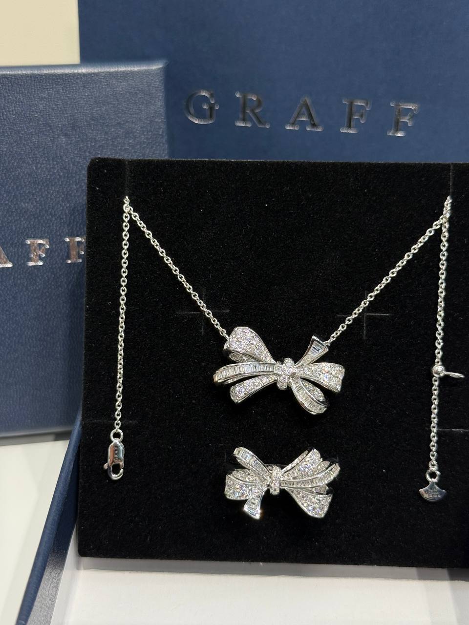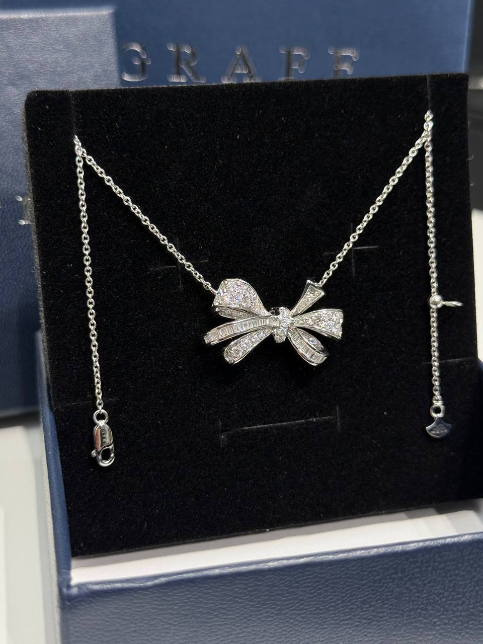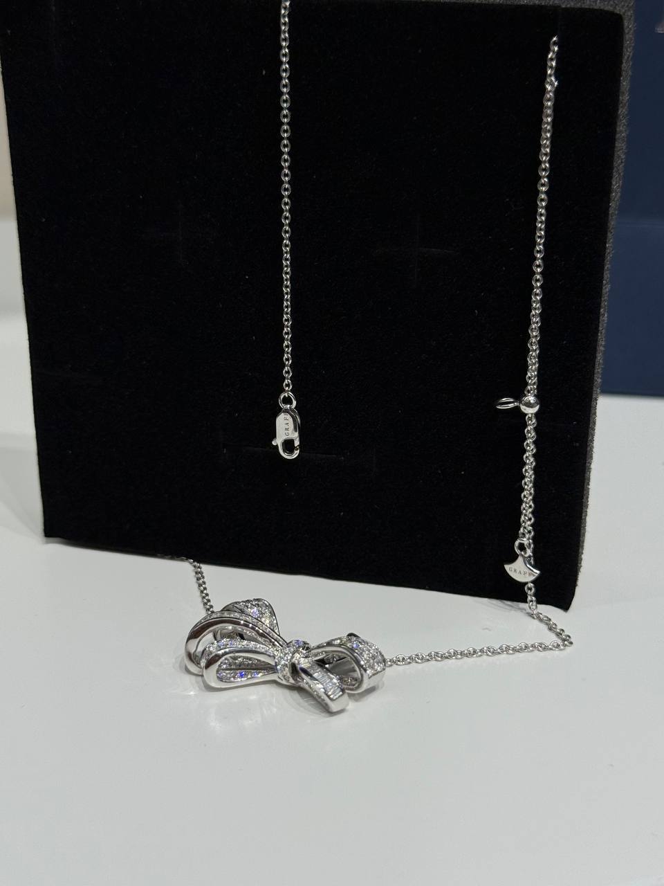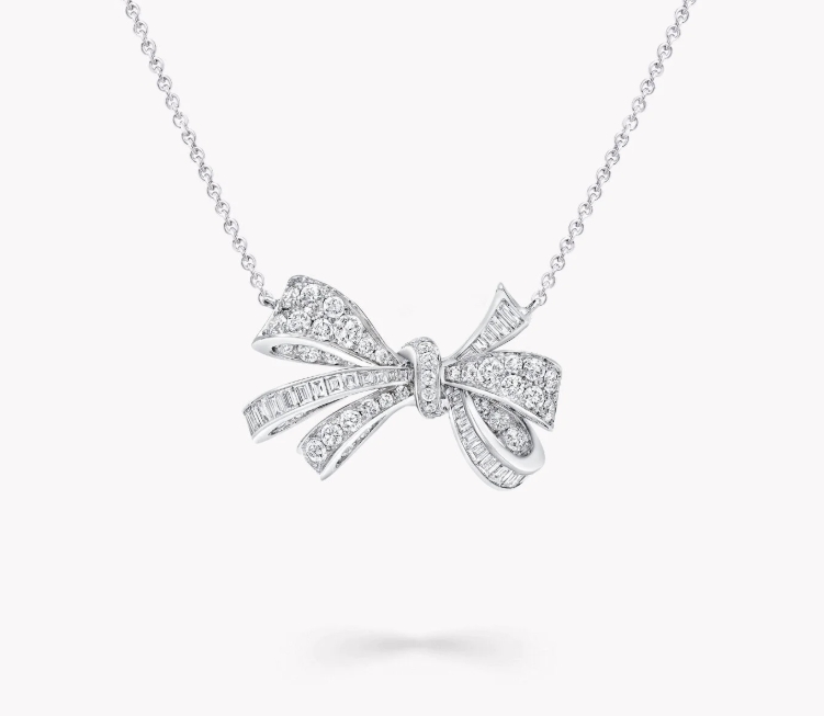 Подвеска Graff Tilda's Bow — ювелирное изделие с дизайном, вдохновлённым изящными бантами. Дизайнеры бренда Graff увидели изящный лук, украшенный нежной лентой, и решили создать украшение, которое бы отражало красоту и элегантность этого образа.