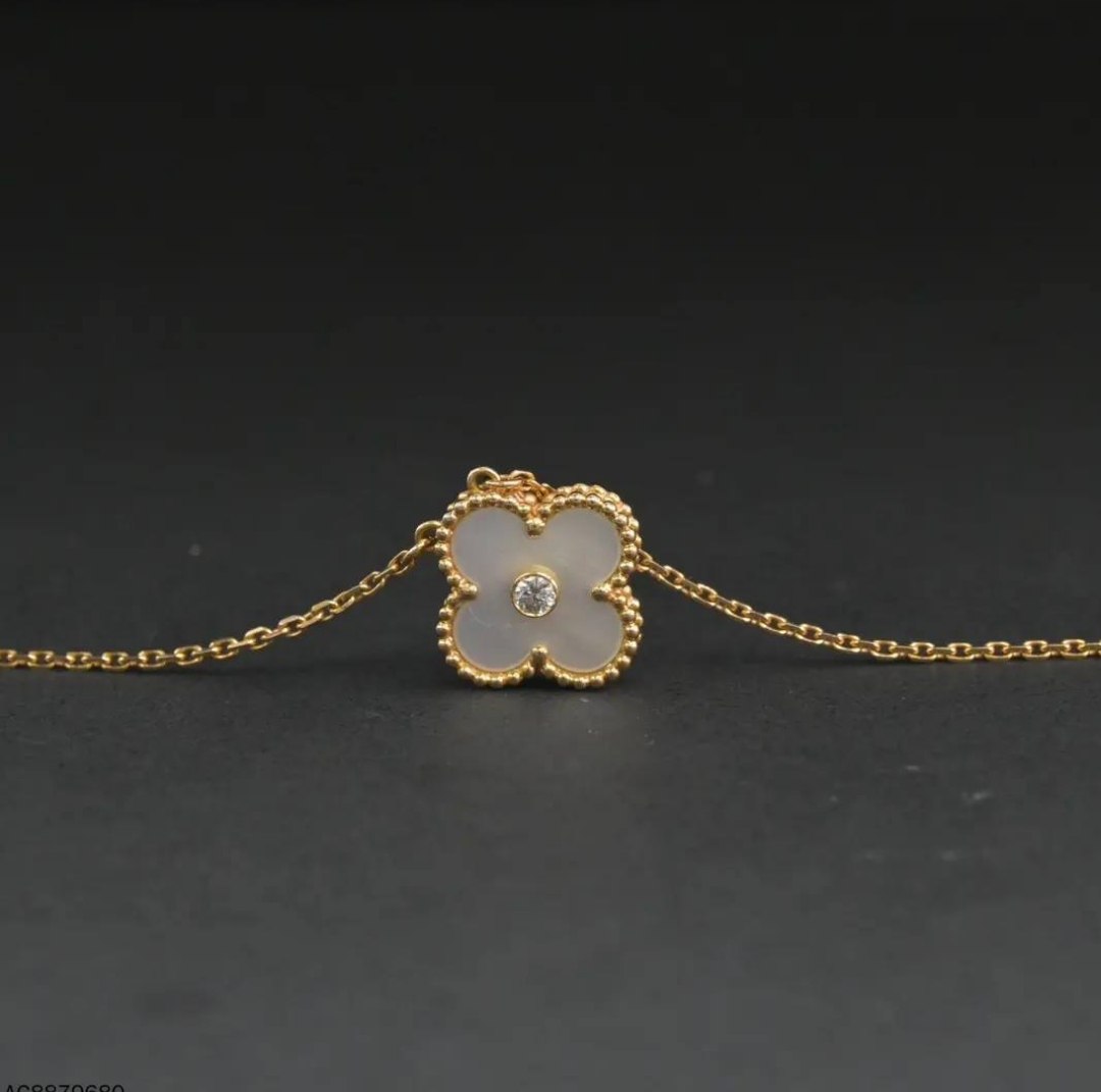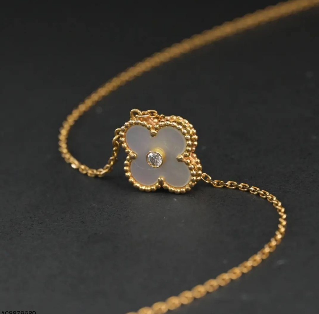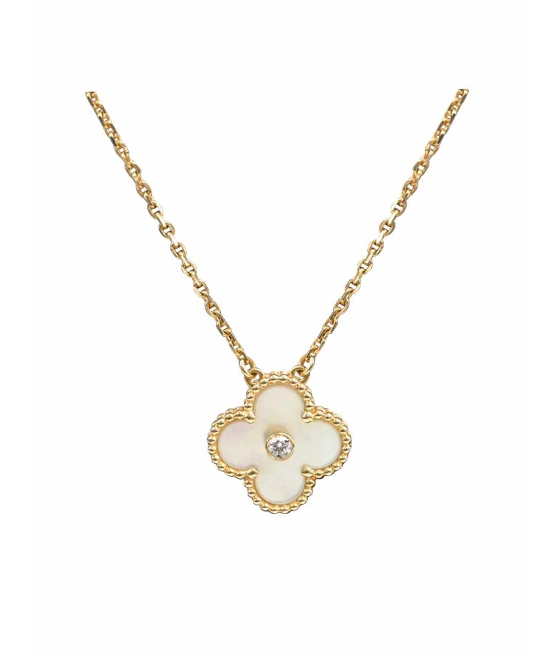 Модели Vintage Alhambra следуют стилю украшений Alhambra от Van Cleef & Arpels 1968 года и отличаются вневременной элегантностью. Форму этих легендарных символов удачи, навеянных образом четырехлистного клевера, подчеркивает обрамление из золотых бусинок.