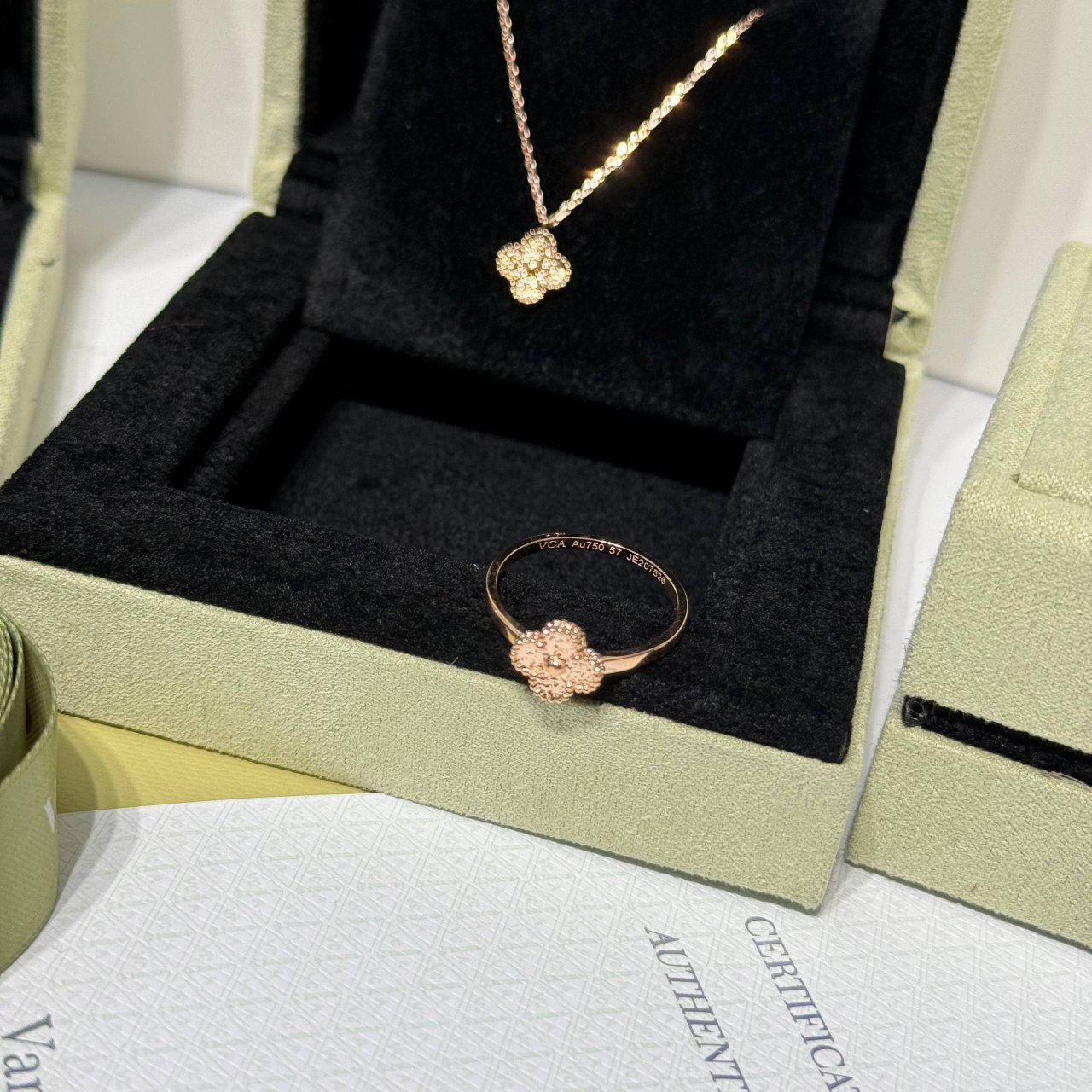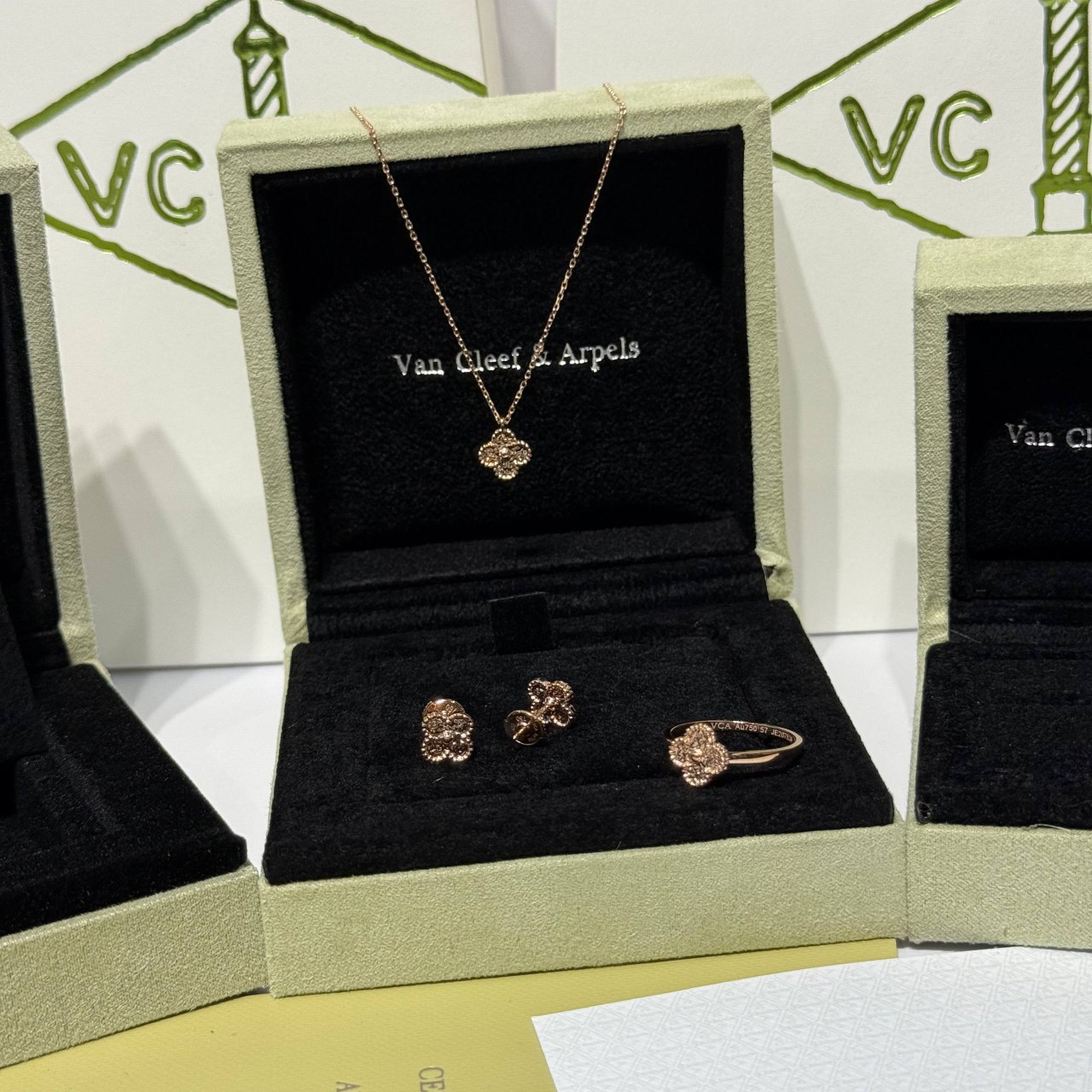 Модели Vintage Alhambra следуют стилю украшений Alhambra от Van Cleef & Arpels 1968 года и отличаются вневременной элегантностью. Форму этих легендарных символов удачи, навеянных образом четырехлистного клевера, подчеркивает обрамление из золотых бусинок.