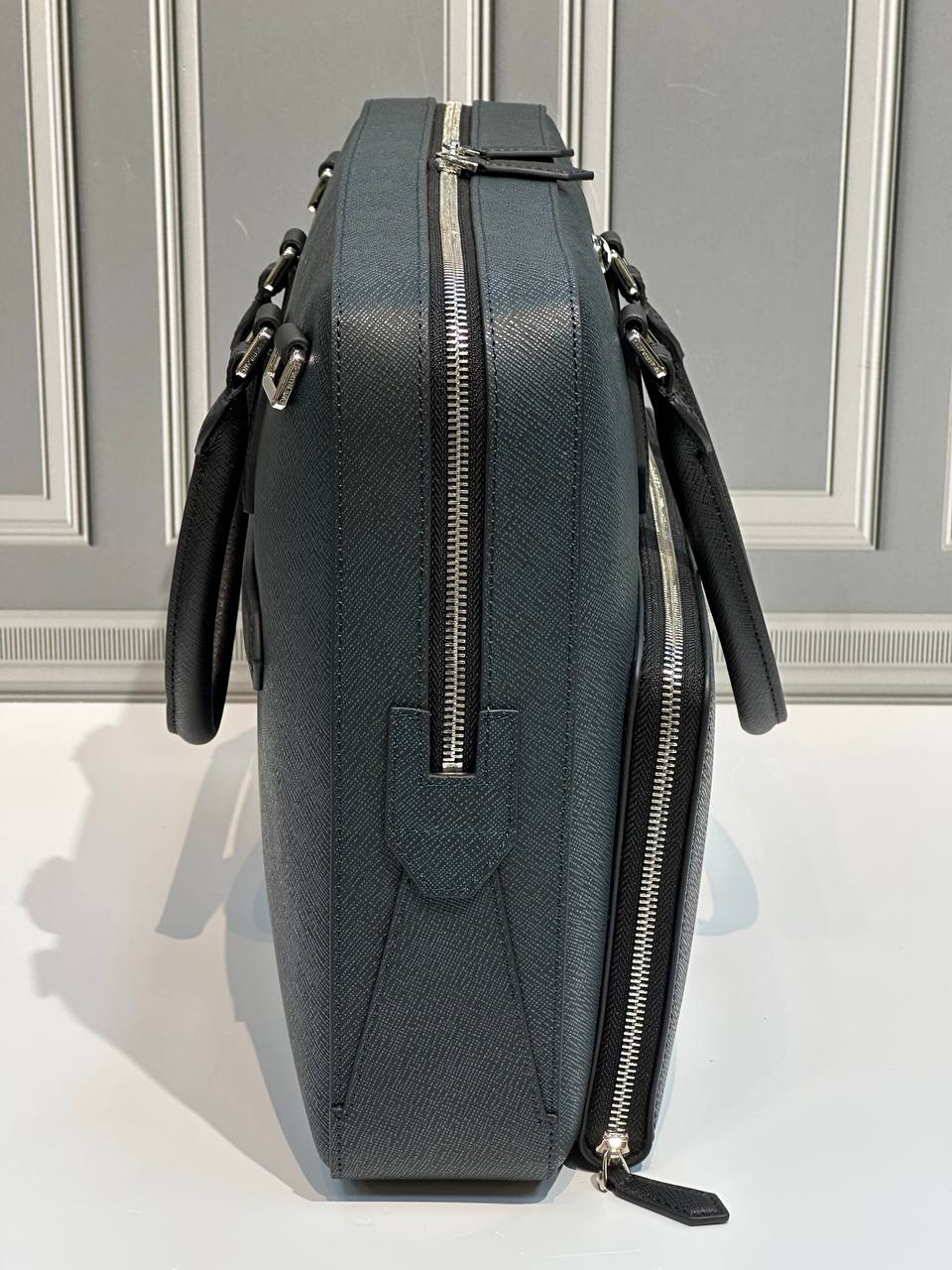 Стильный портфель для документов с просторным основным отделением и внешним карманом на молнии прекрасно подойдет для хранения документов формата A4, электронных устройств и других необходимых в работе вещей. Модель также оснащена специальными отделениями для пишущих инструментов. Благодаря модульной конструкции этот элегантный аксессуар из кожи с изысканной отделкой можно прикрепить к другим сумкам из коллекции Sartorial