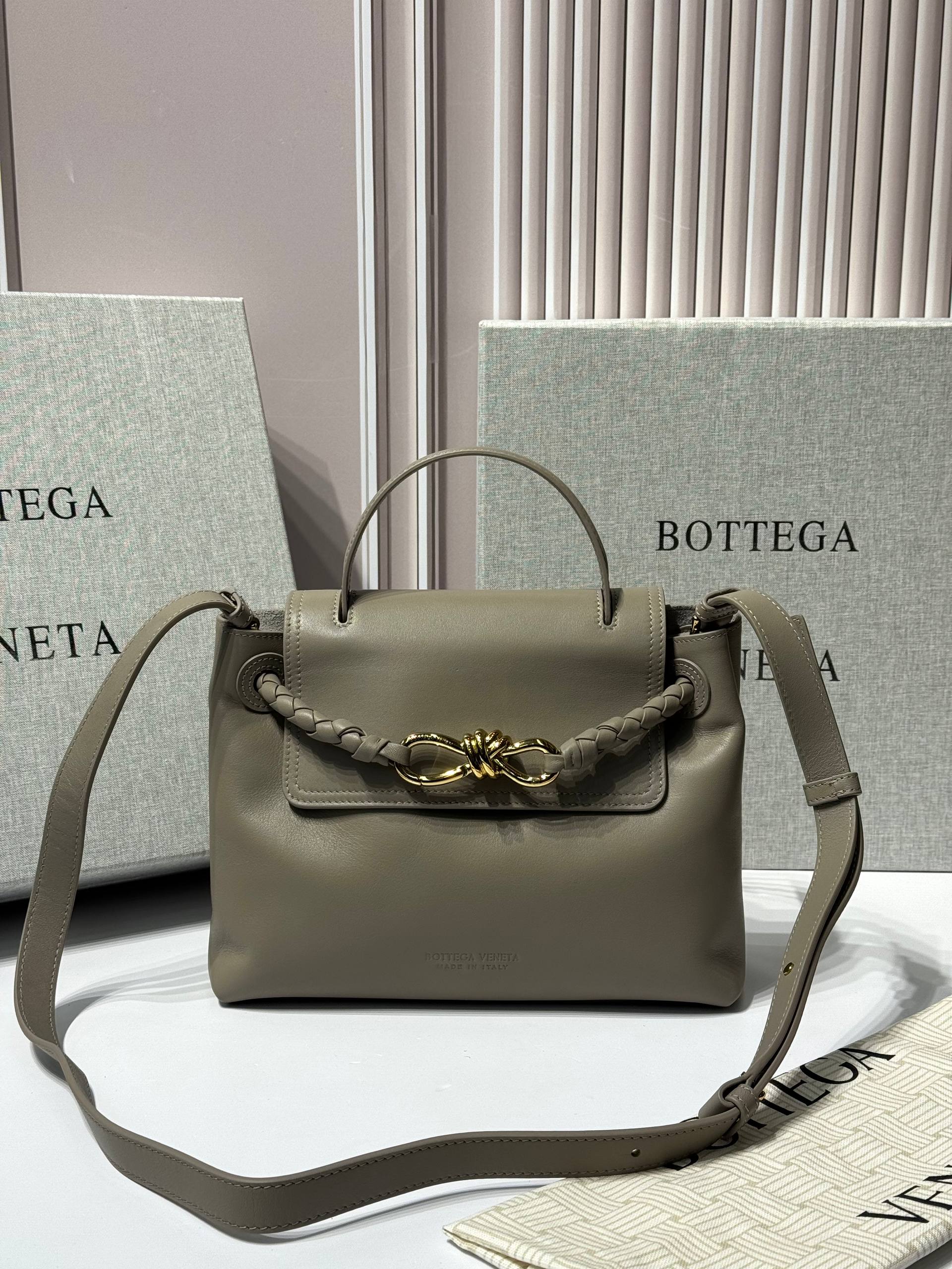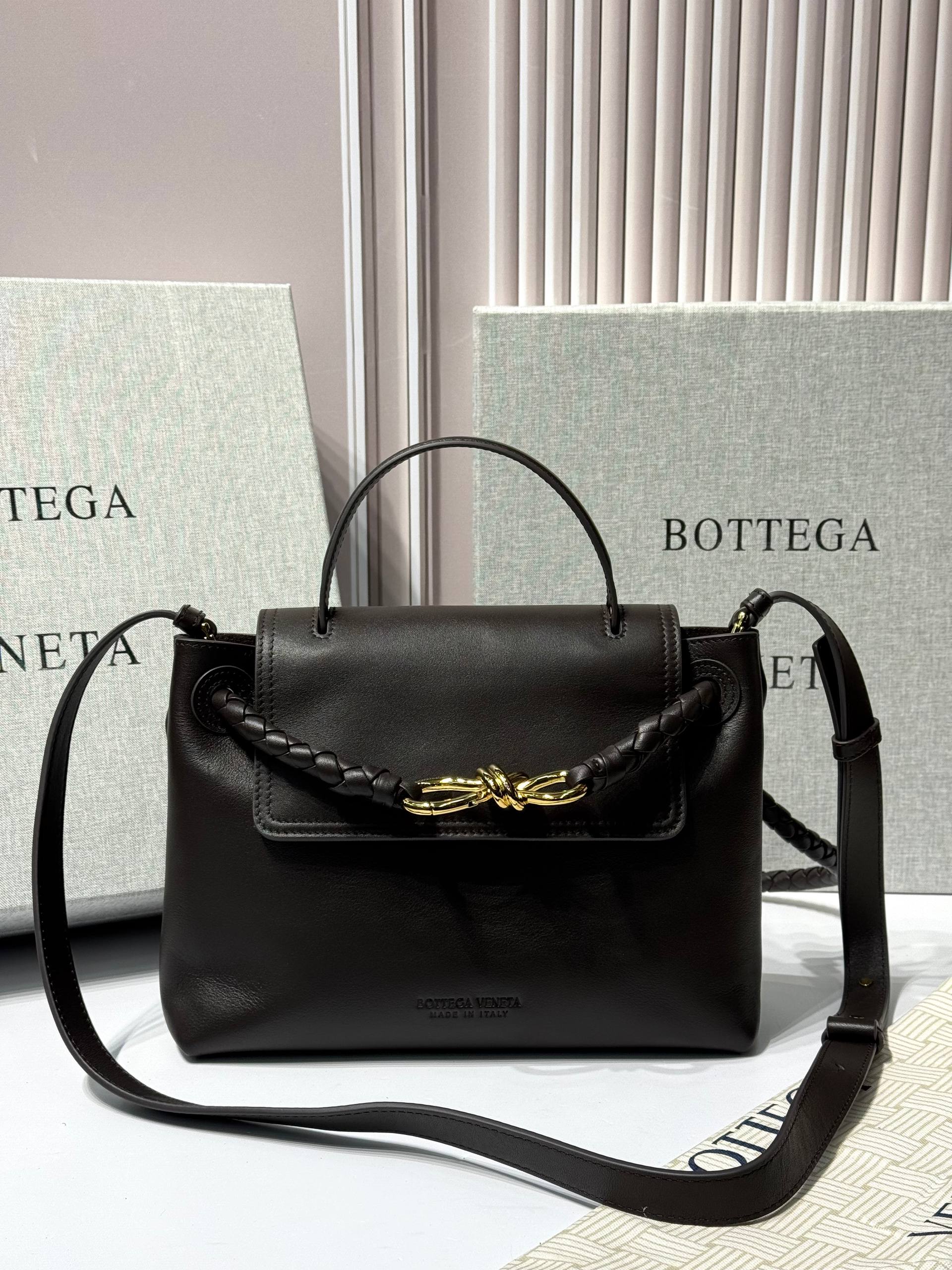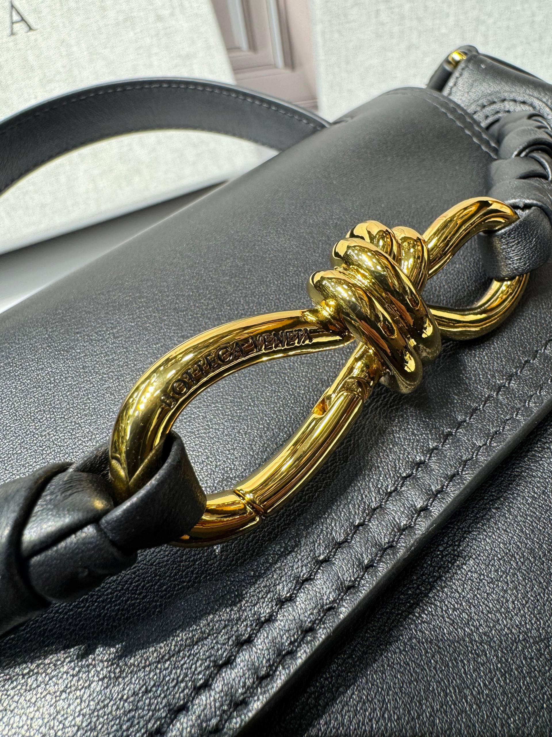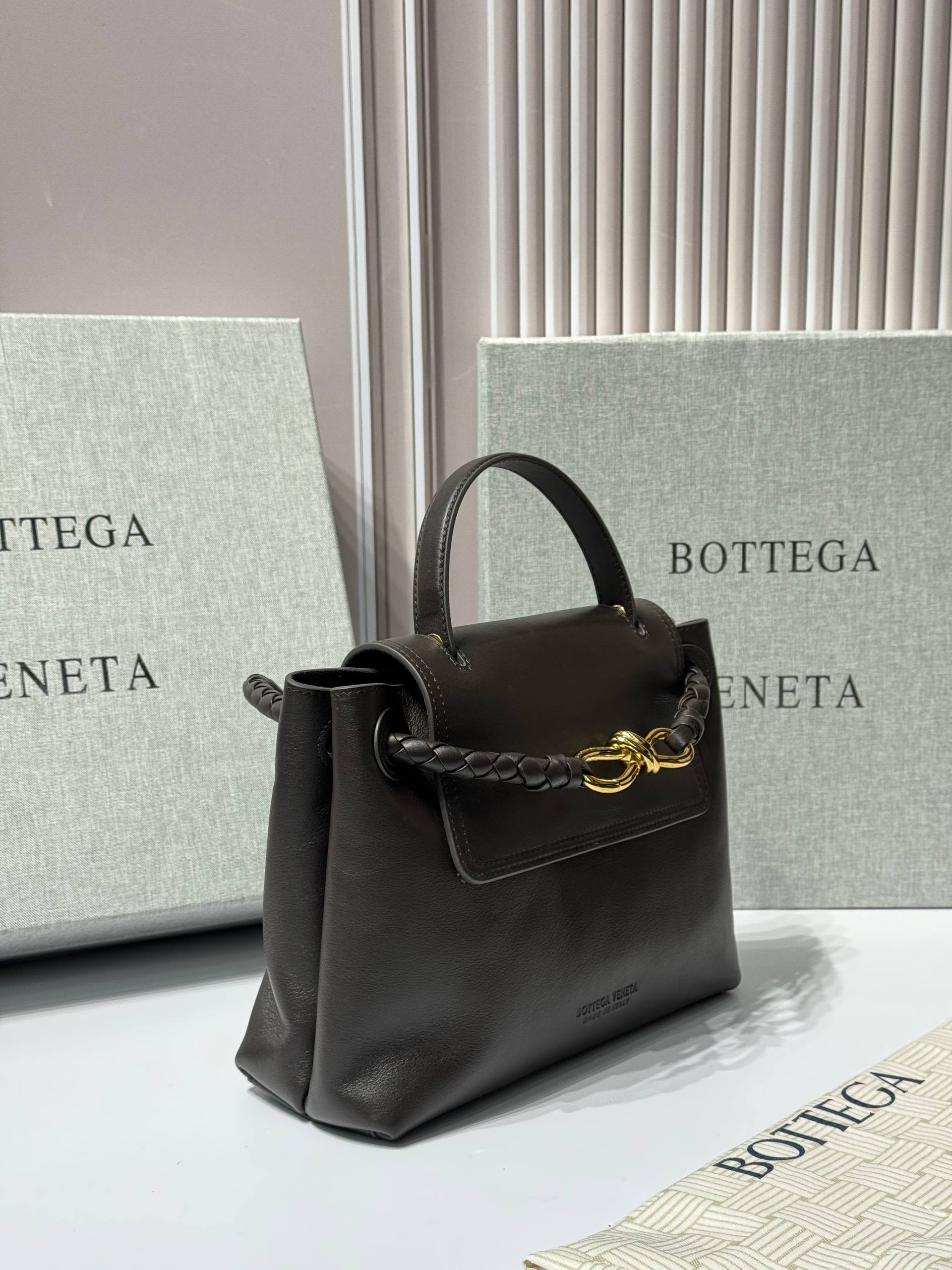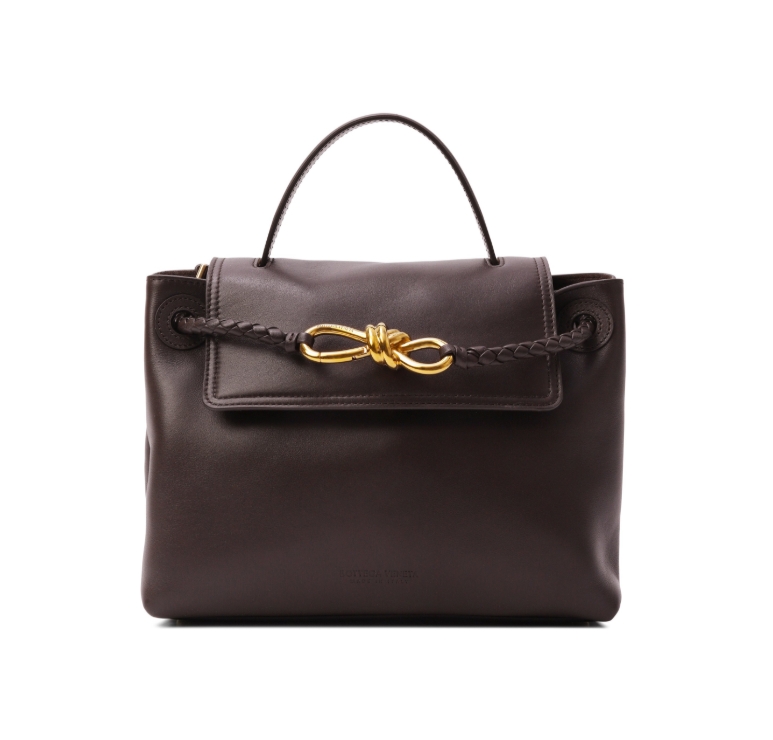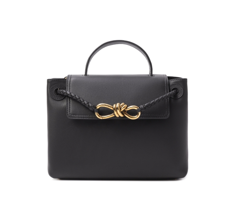 Сумка с верхней ручкой из шелковистой телячьей кожи с двусторонним клапаном и фирменной деталью узла. Имеет скрытую застежку-крючок, позволяющую закрыть клапан спереди или прикрепить к внутреннему карману Intrecciato.