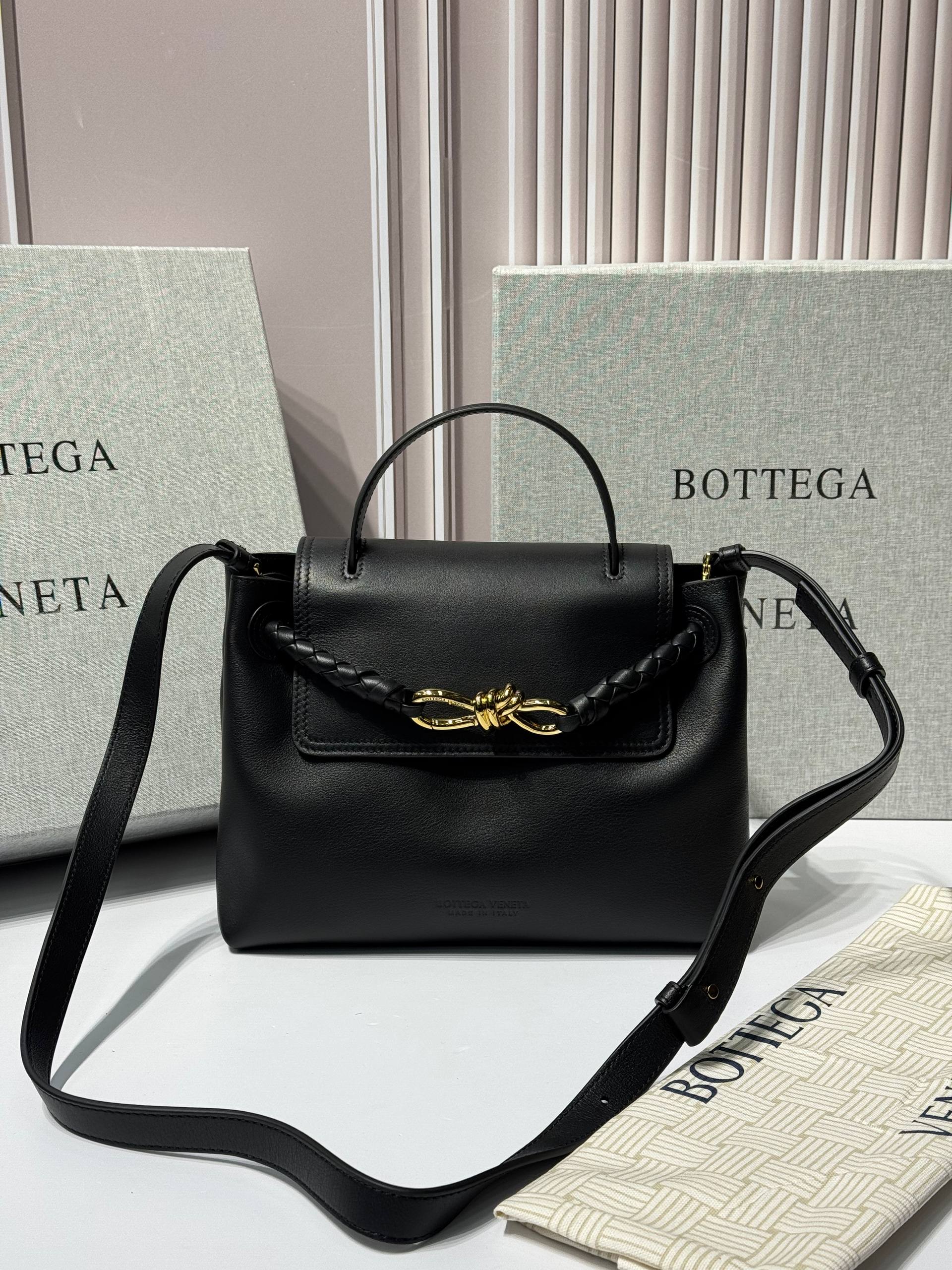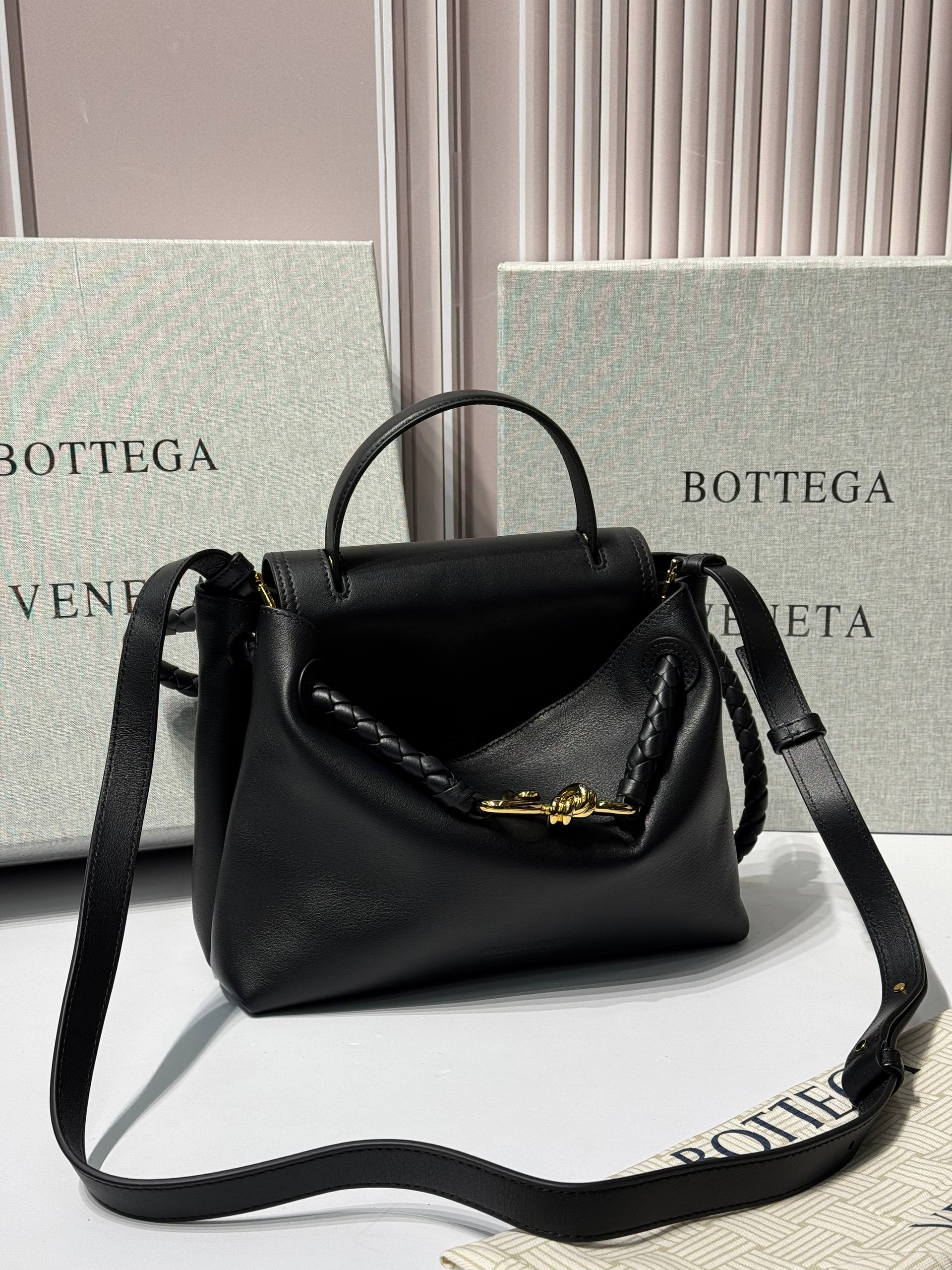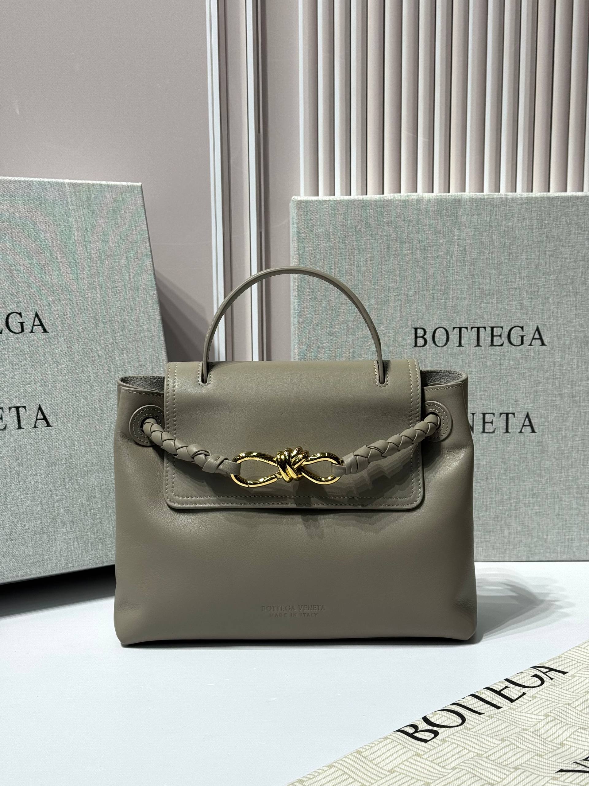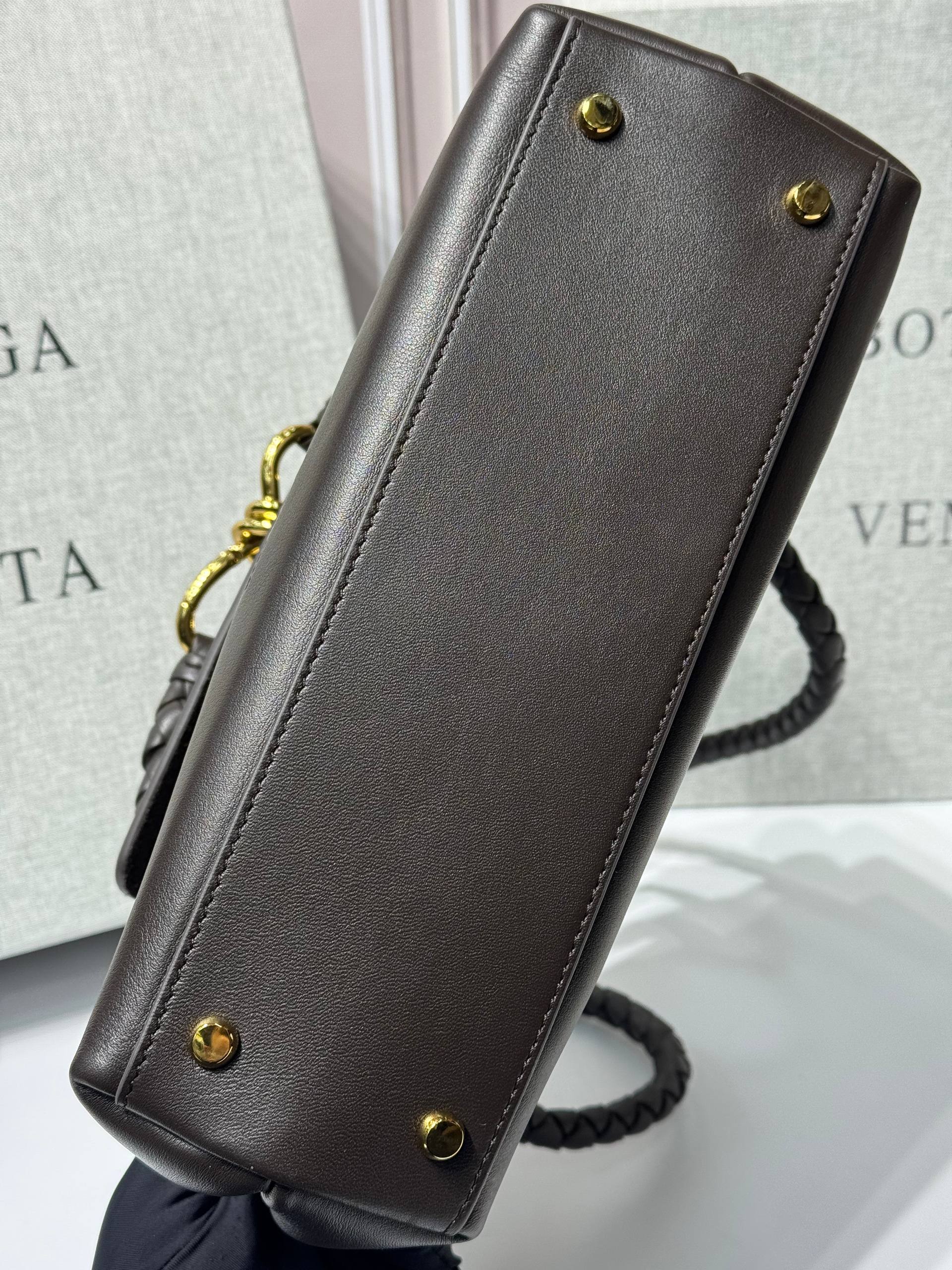 Сумка с верхней ручкой из шелковистой телячьей кожи с двусторонним клапаном и фирменной деталью узла. Имеет скрытую застежку-крючок, позволяющую закрыть клапан спереди или прикрепить к внутреннему карману Intrecciato.