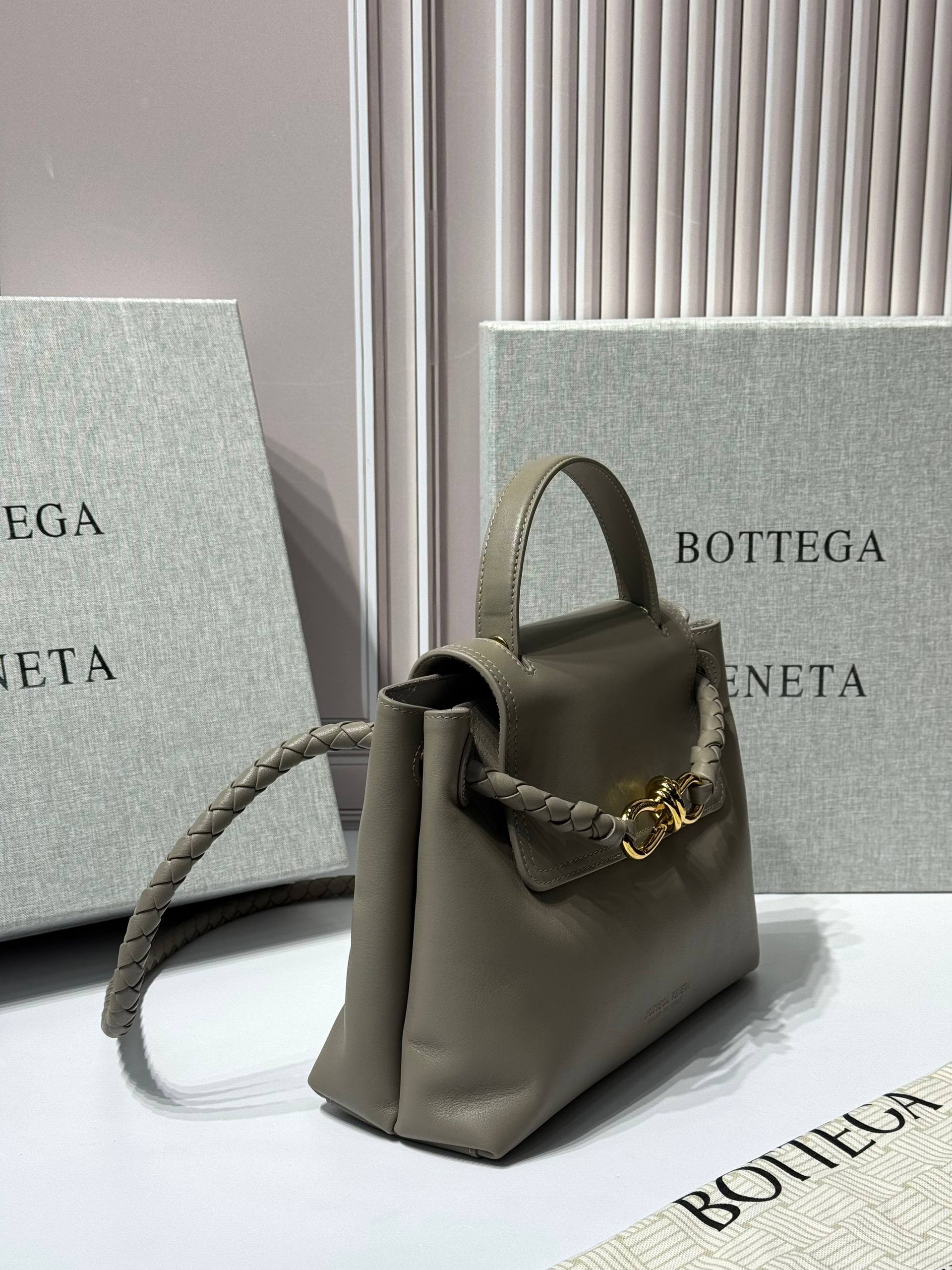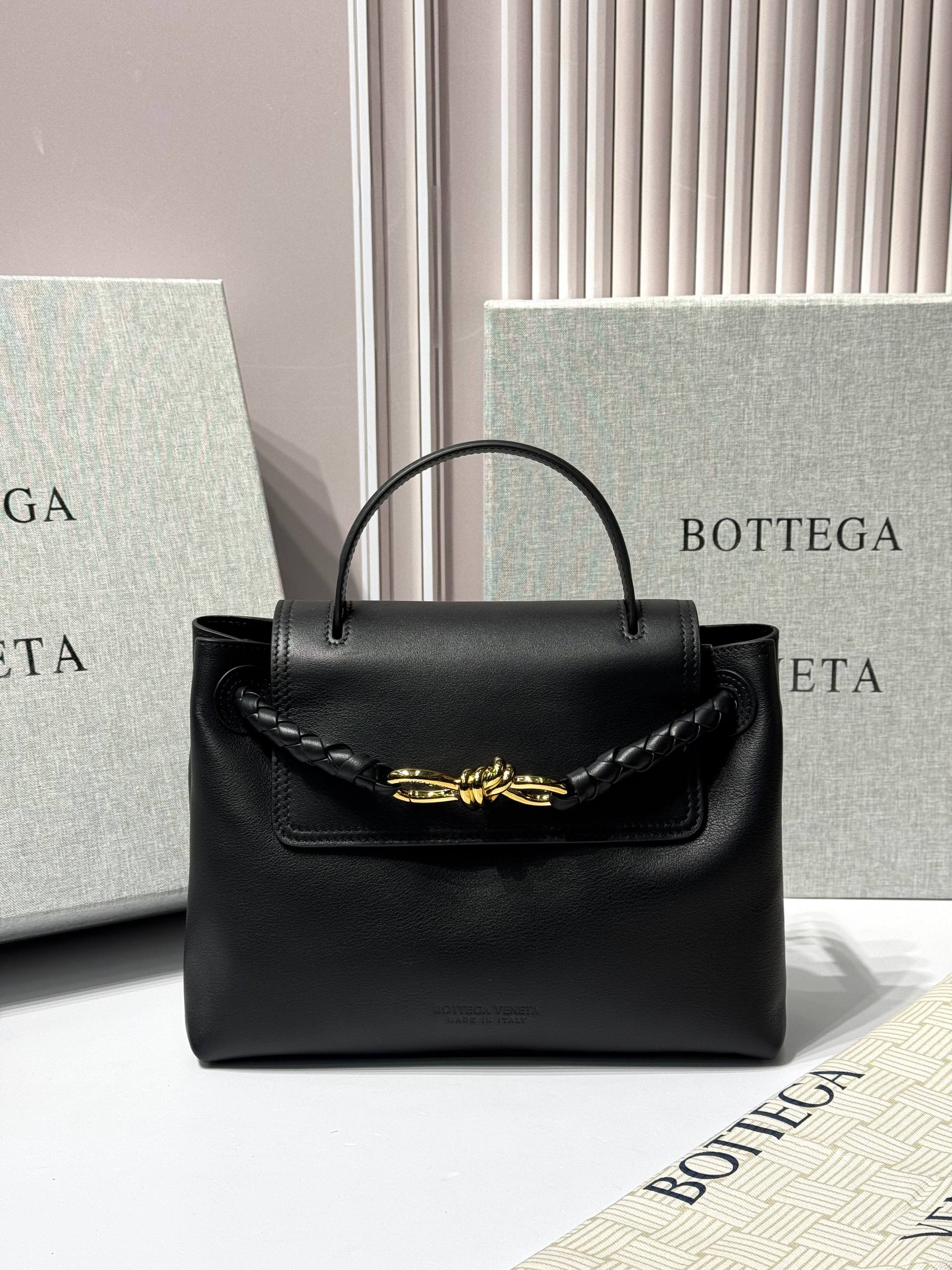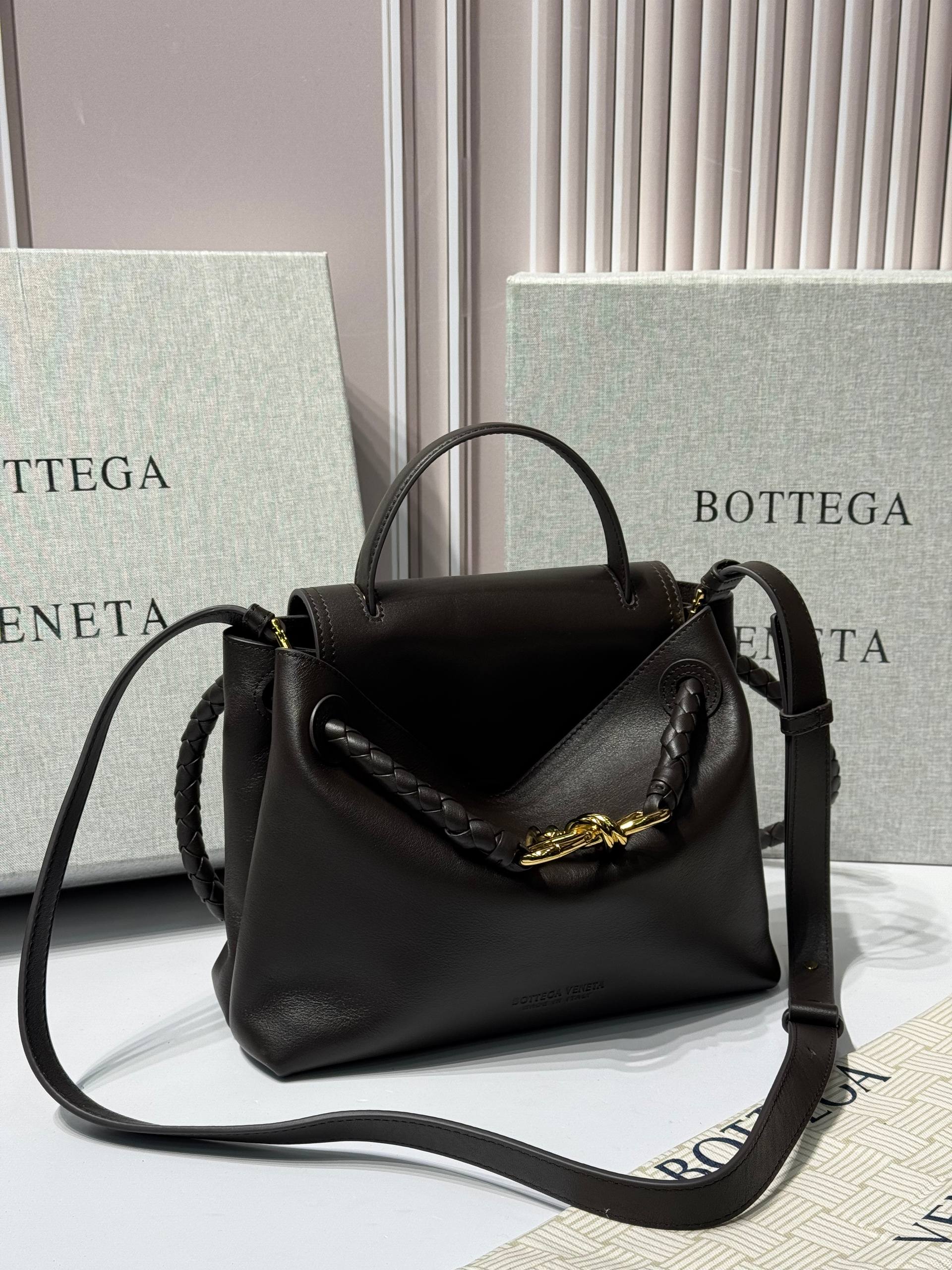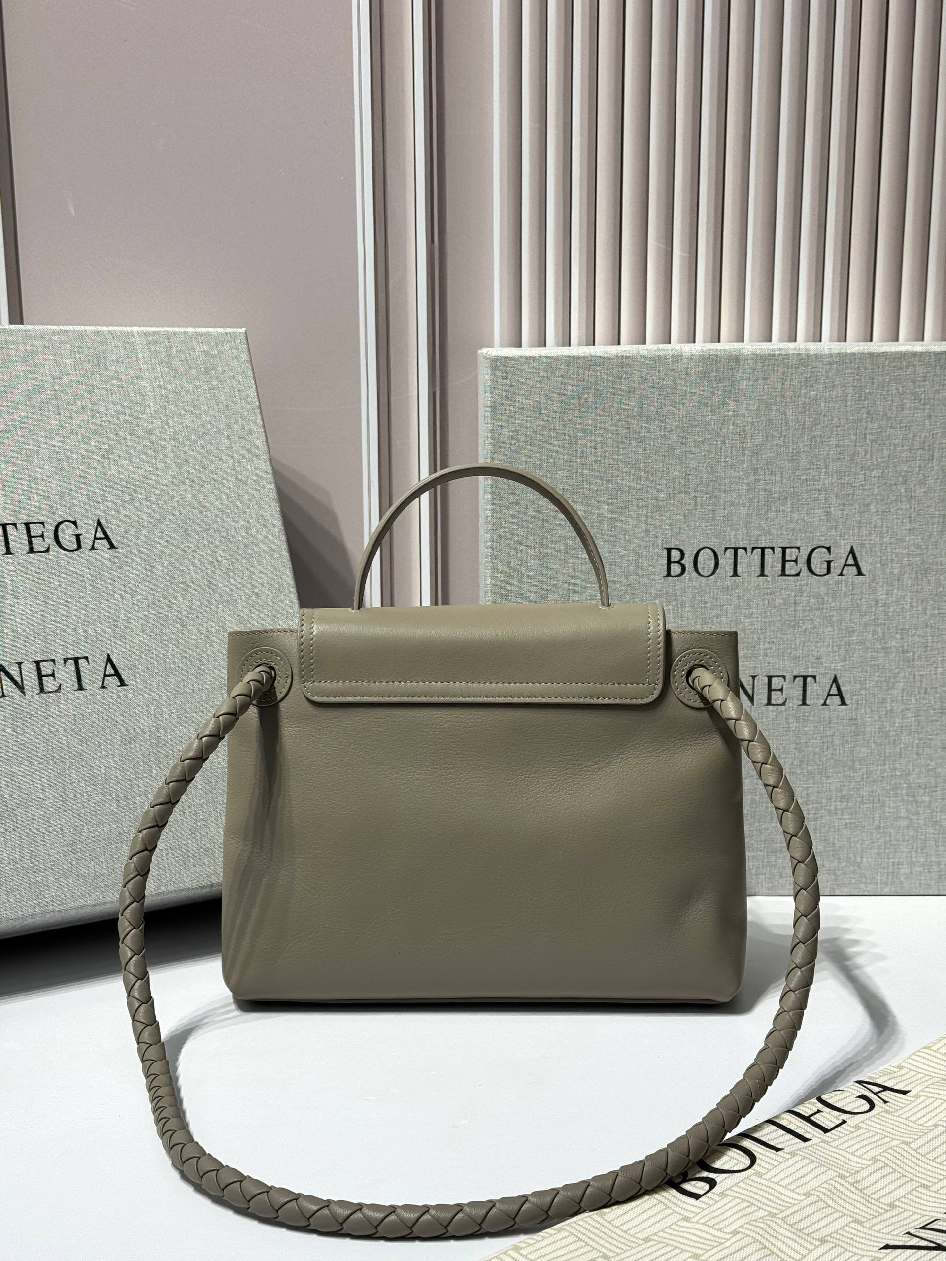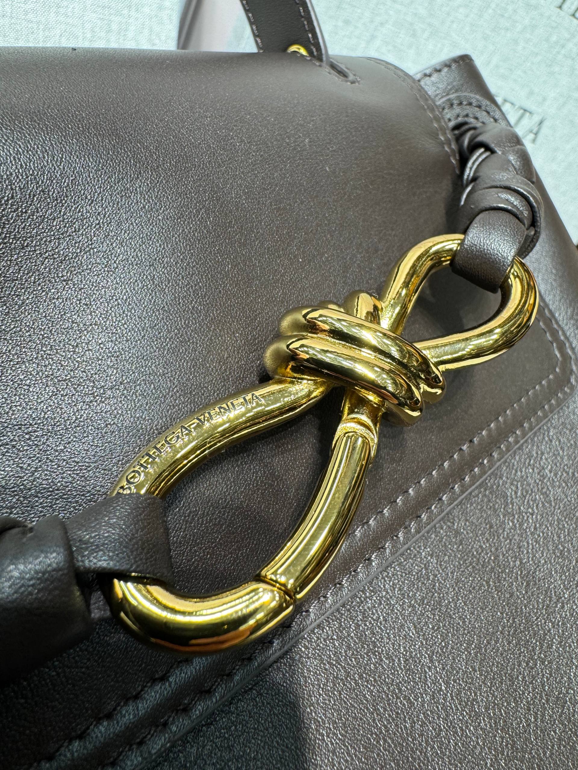 Сумка с верхней ручкой из шелковистой телячьей кожи с двусторонним клапаном и фирменной деталью узла. Имеет скрытую застежку-крючок, позволяющую закрыть клапан спереди или прикрепить к внутреннему карману Intrecciato.
