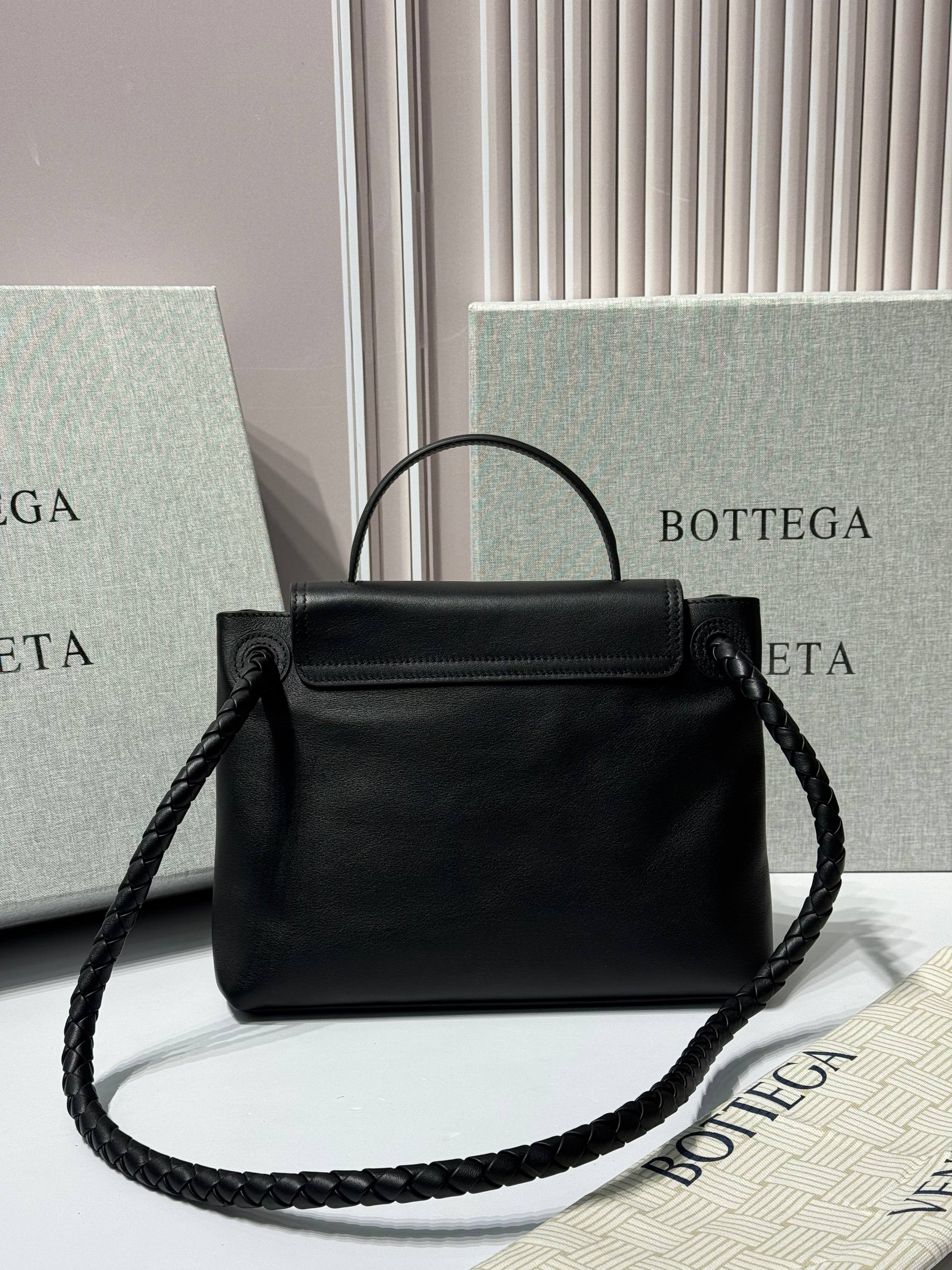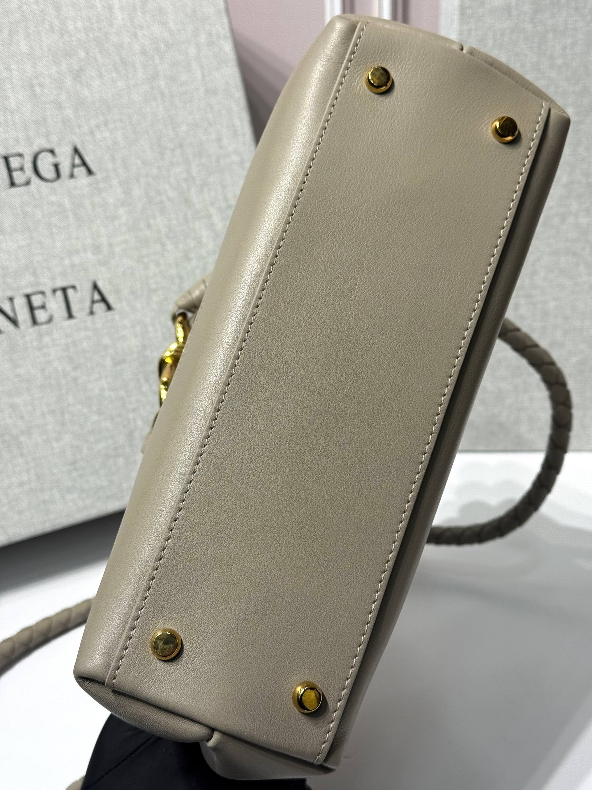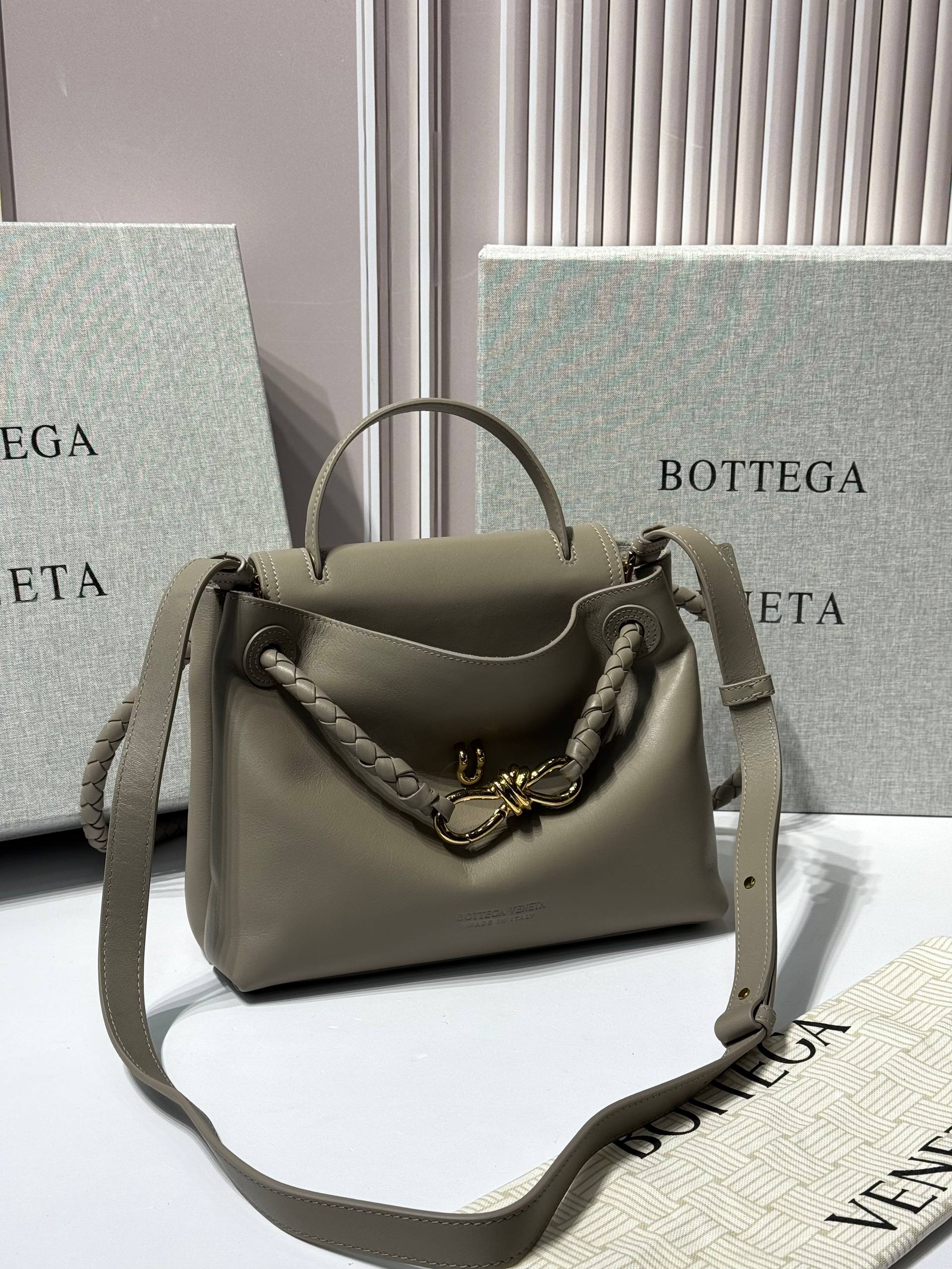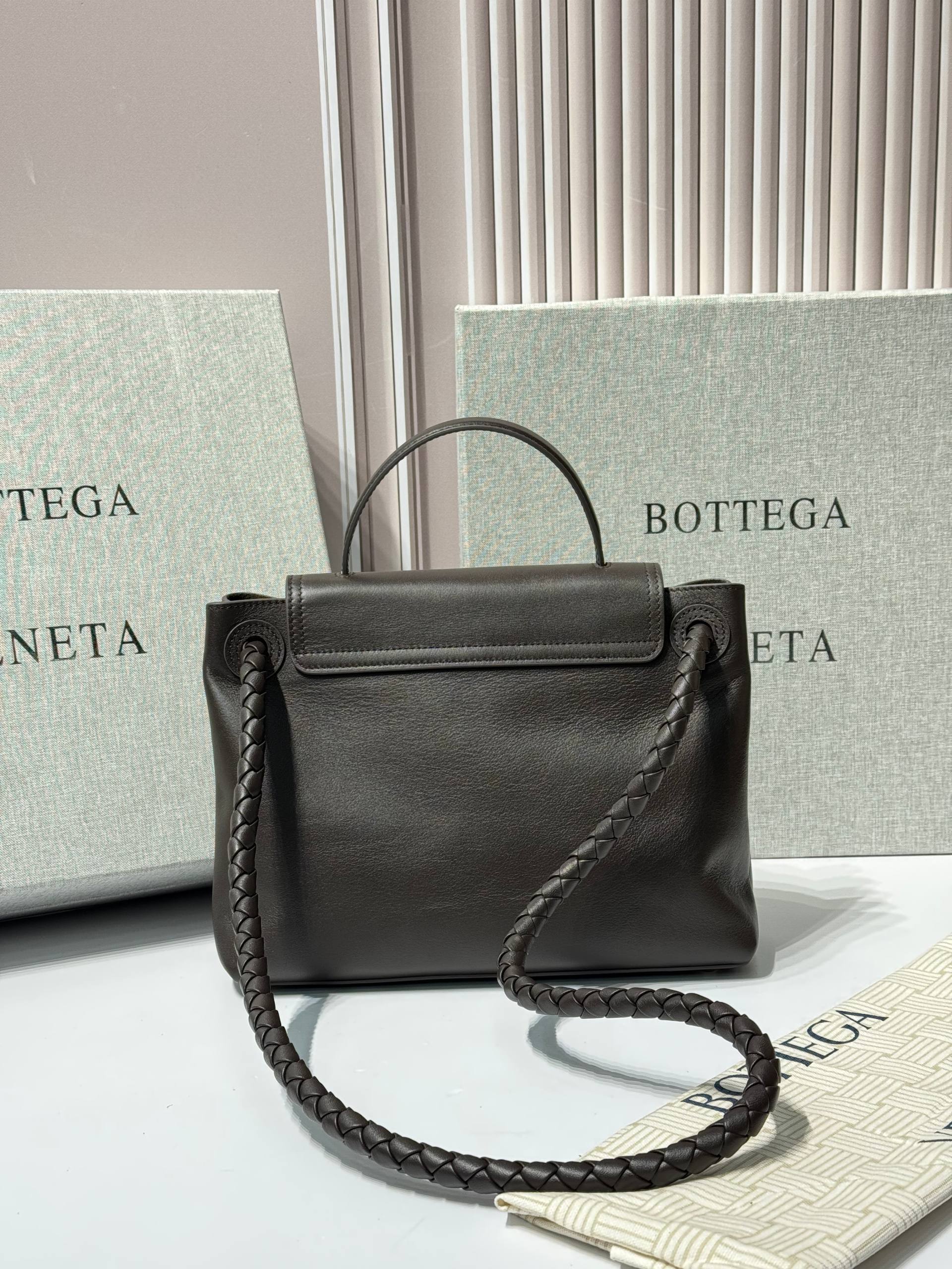 Сумка с верхней ручкой из шелковистой телячьей кожи с двусторонним клапаном и фирменной деталью узла. Имеет скрытую застежку-крючок, позволяющую закрыть клапан спереди или прикрепить к внутреннему карману Intrecciato.