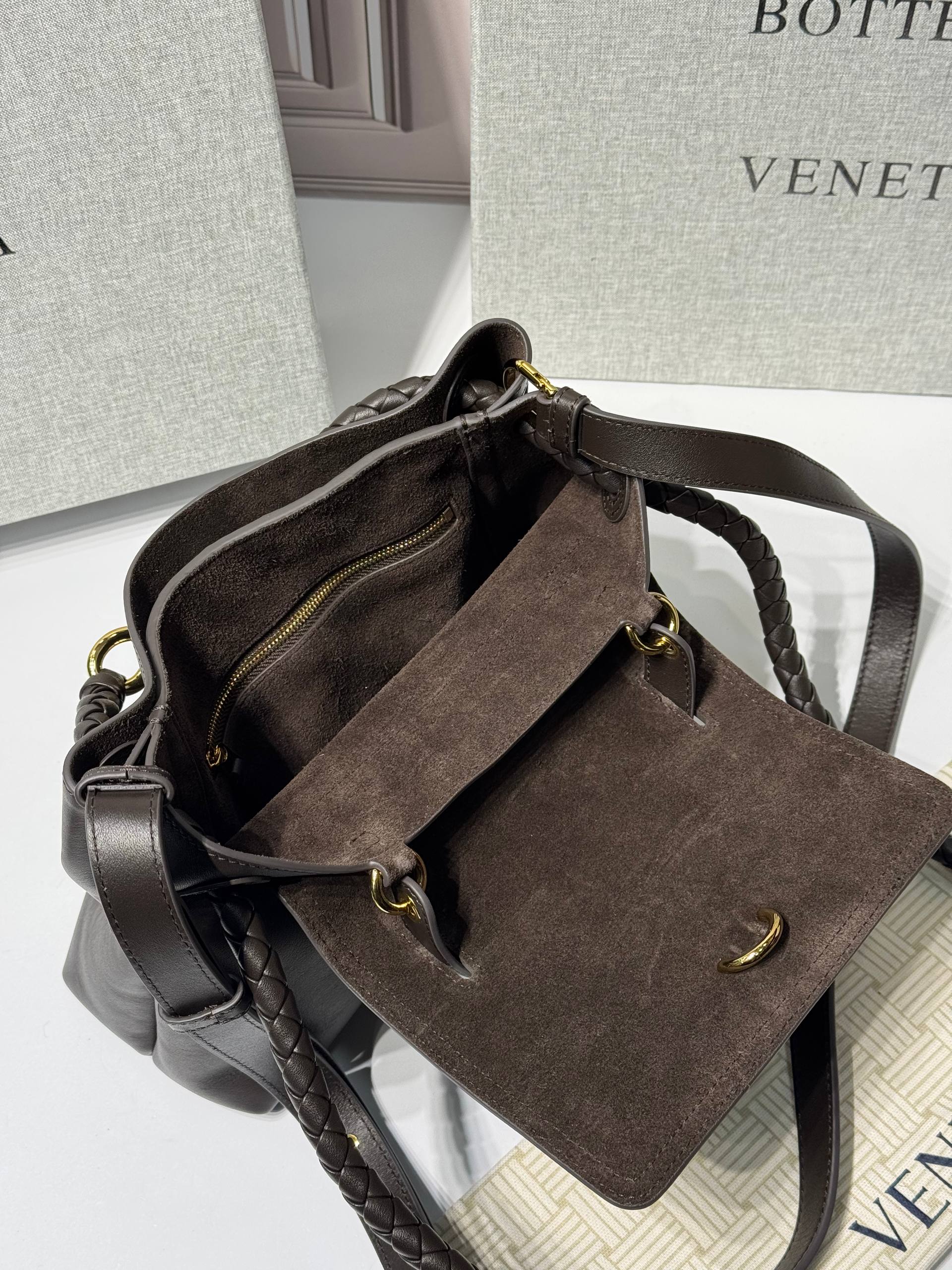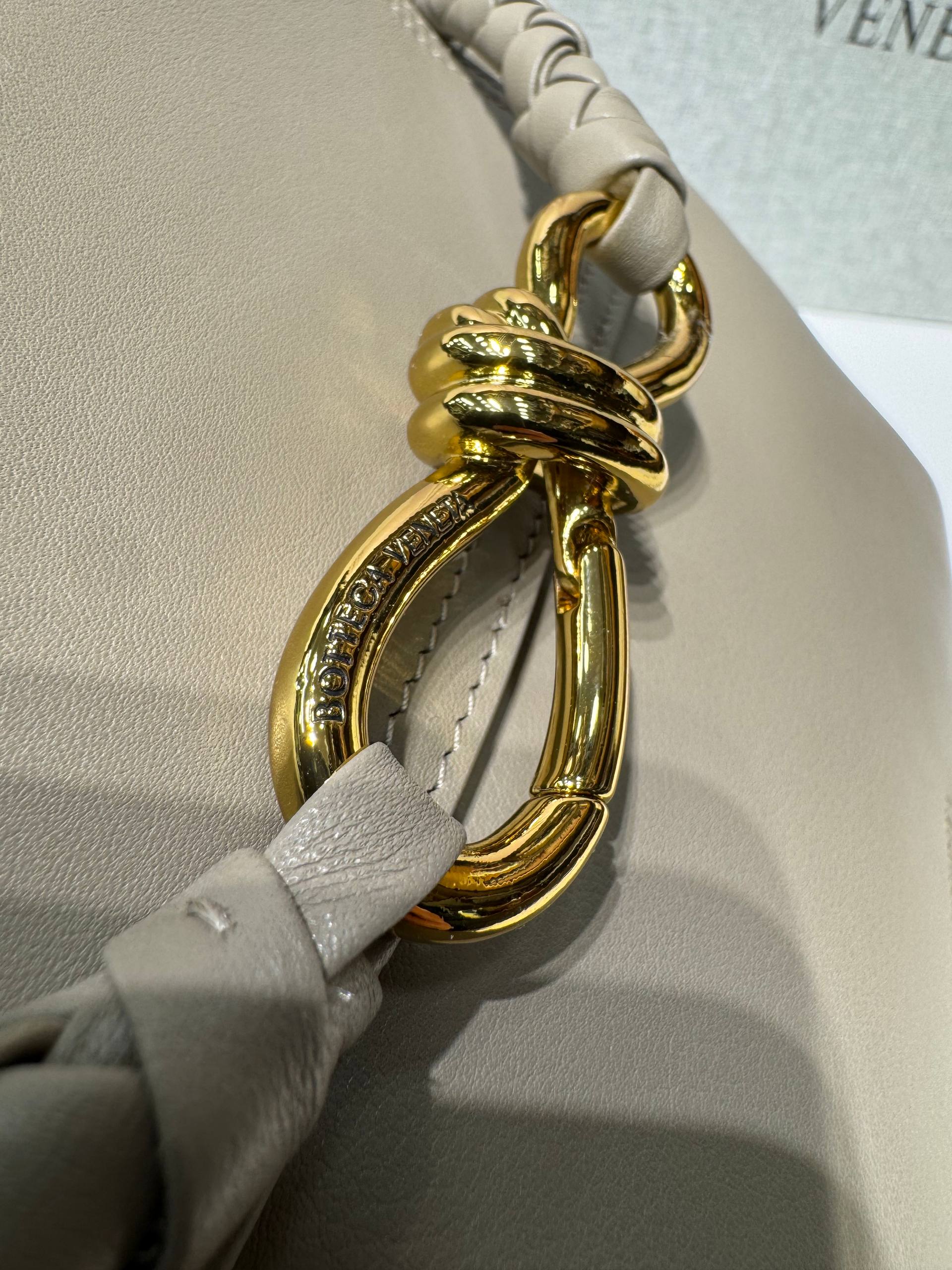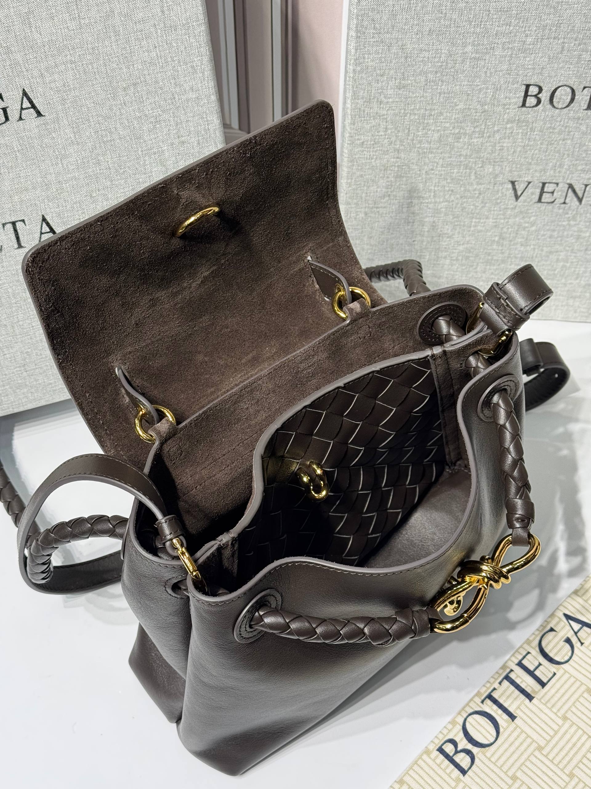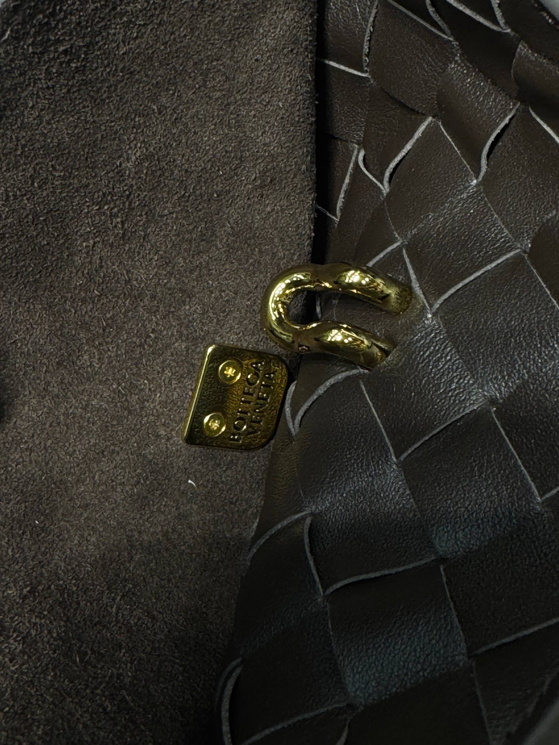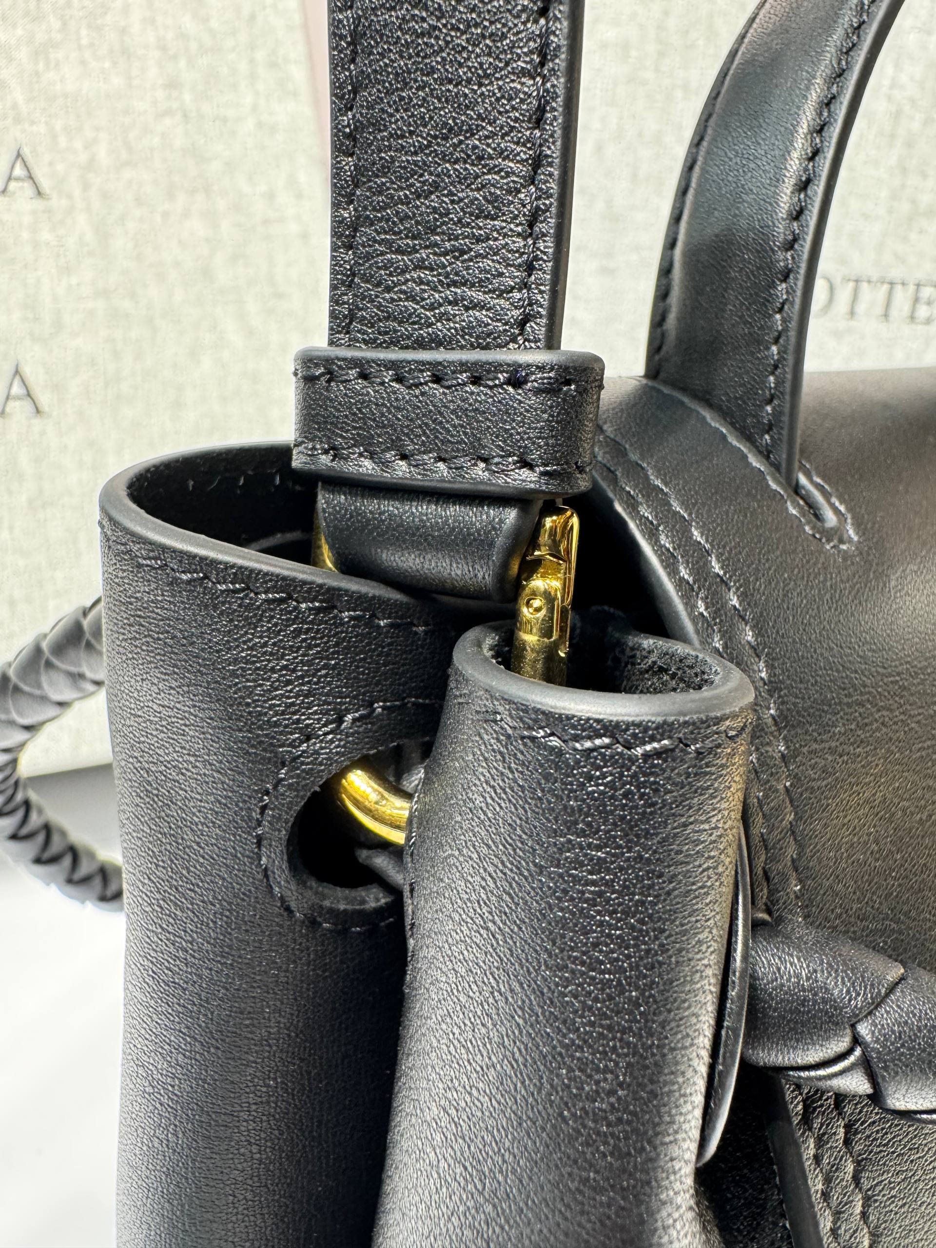 Сумка с верхней ручкой из шелковистой телячьей кожи с двусторонним клапаном и фирменной деталью узла. Имеет скрытую застежку-крючок, позволяющую закрыть клапан спереди или прикрепить к внутреннему карману Intrecciato.