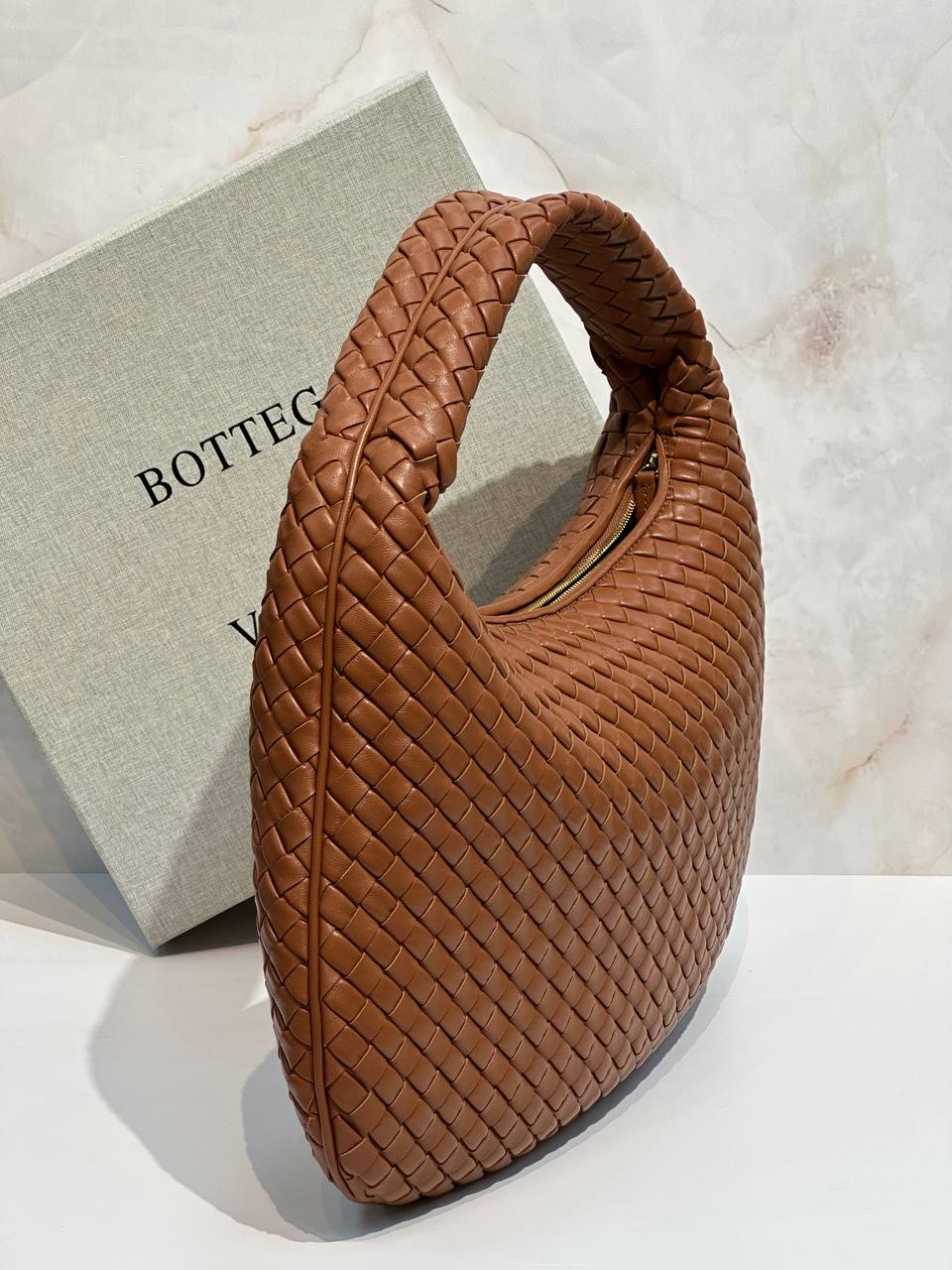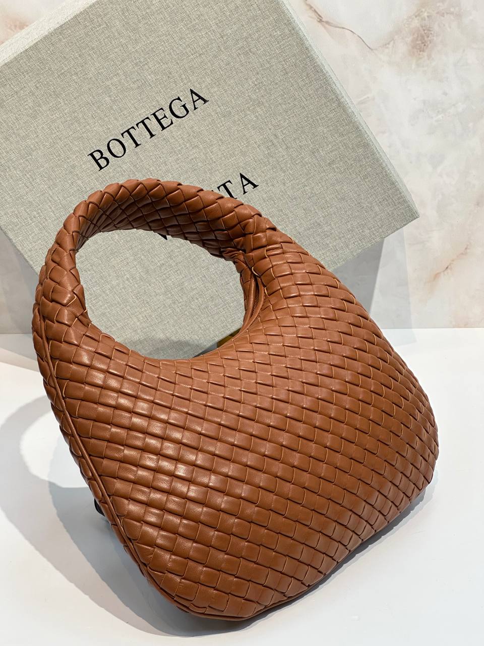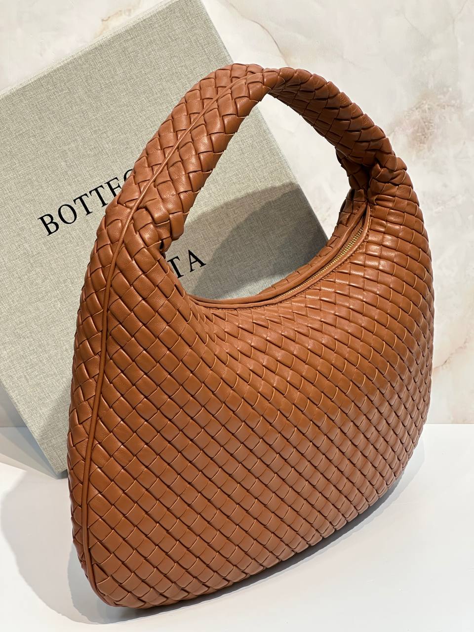 Сумка через плечо с бесшовной обработкой Intrecciato из мягкой кожи. Эта сумка подходит для получения сертификата качества (Certificate of Craft).