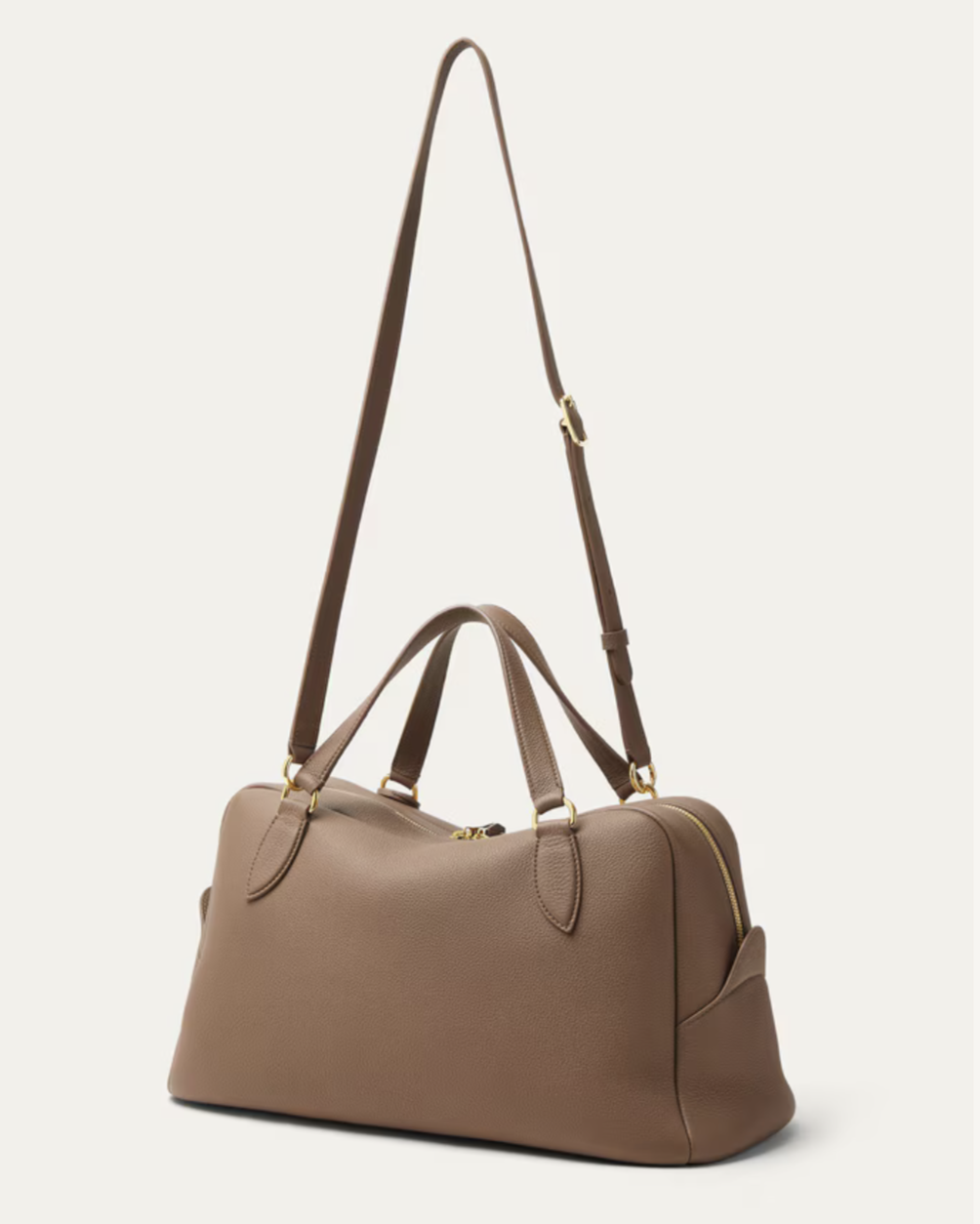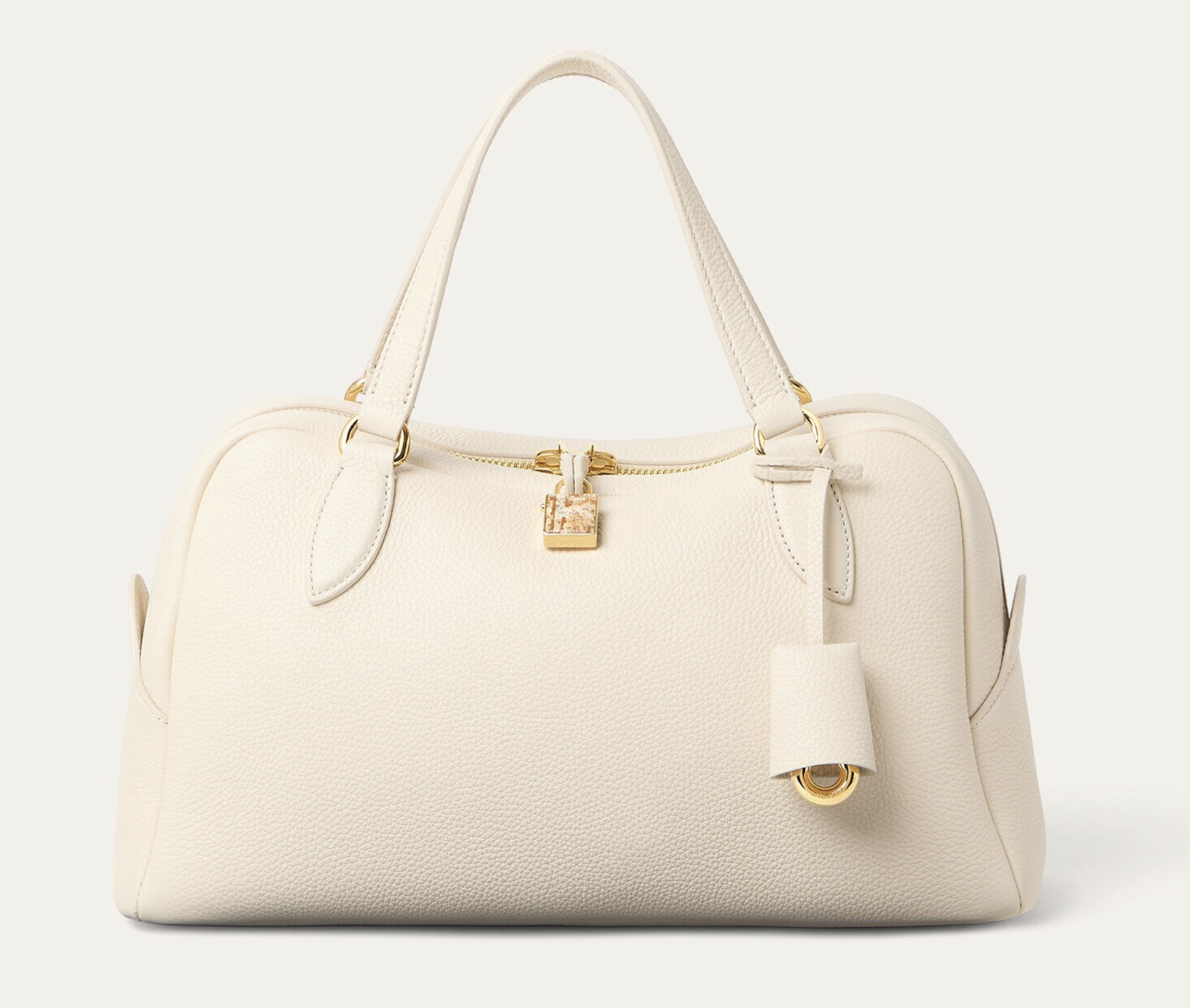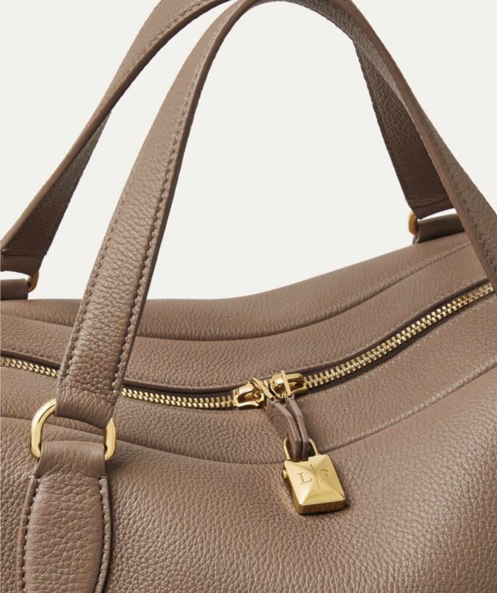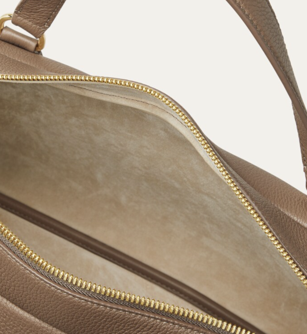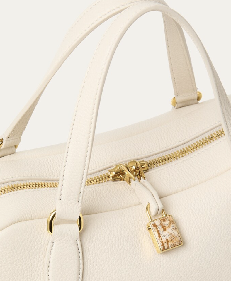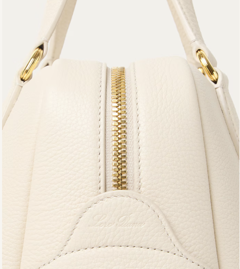 Представленная здесь в небольшом размере, сумка Needle легко сочетает в себе стиль, функциональность и элегантность. Он пропитан текстильным наследием Maison и обладает невероятной чувственностью, похожей на изысканные ткани Loro Piana. Изготовленный из эластичной мелкозернистой кожи, его силуэт подчеркнут фирменными шармами, включая замок с драгоценным камнем в оттенке Baby Cashmere. Он идеально подходит для универсального ношения через плечо или в руке.