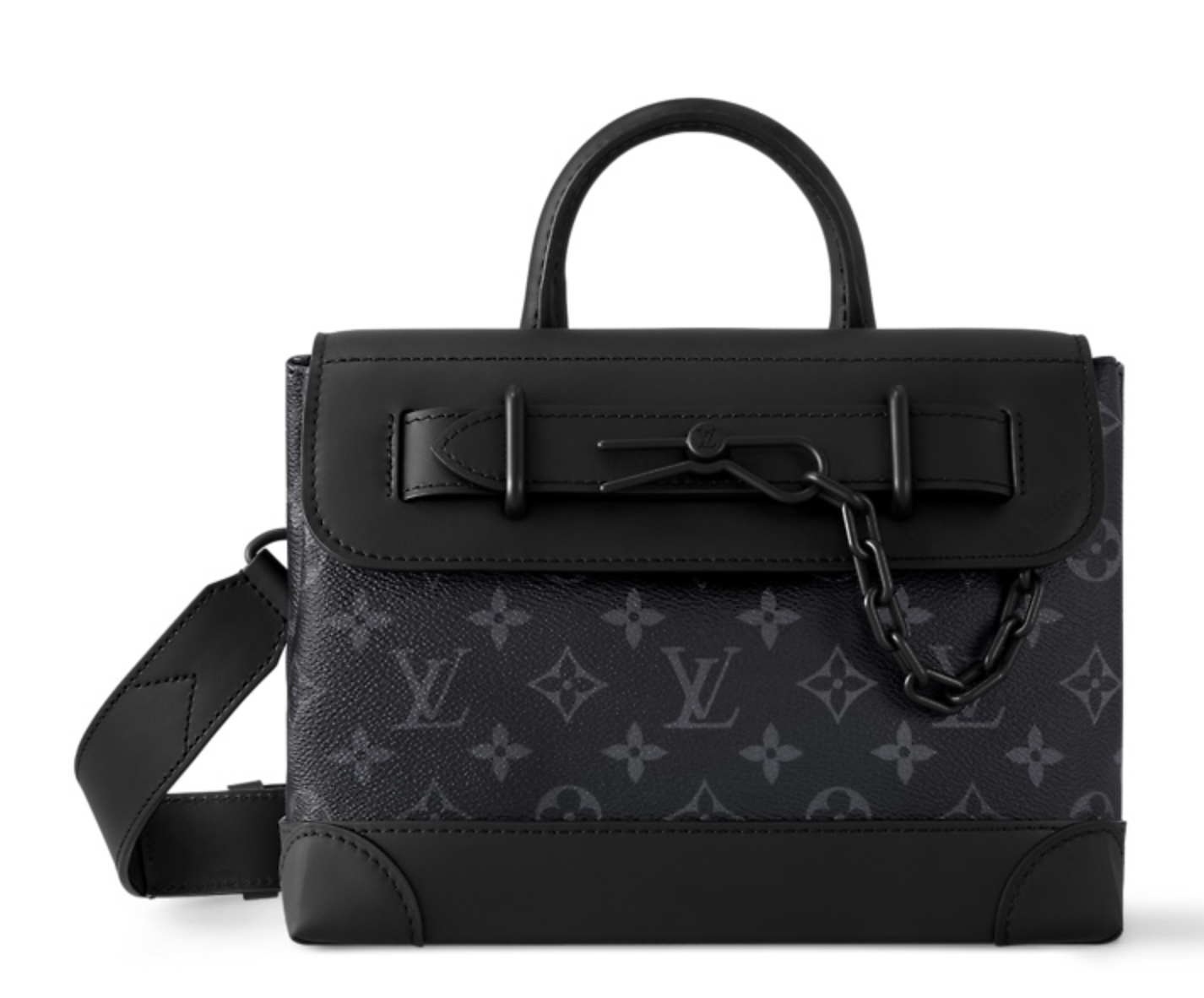 Новая сумка Steamer сочетает в себе богатое наследие Дома и современный дизайн. Мягкая яловая кожа Taurillon чёрного цвета украшена тиснёным узором Monogram. Модель дополняет застёжка на цепочке в стиле классического багажаLouis Vuitton. Практичный аксессуар, который можно носить в различных вариациях, идеален на каждый день.