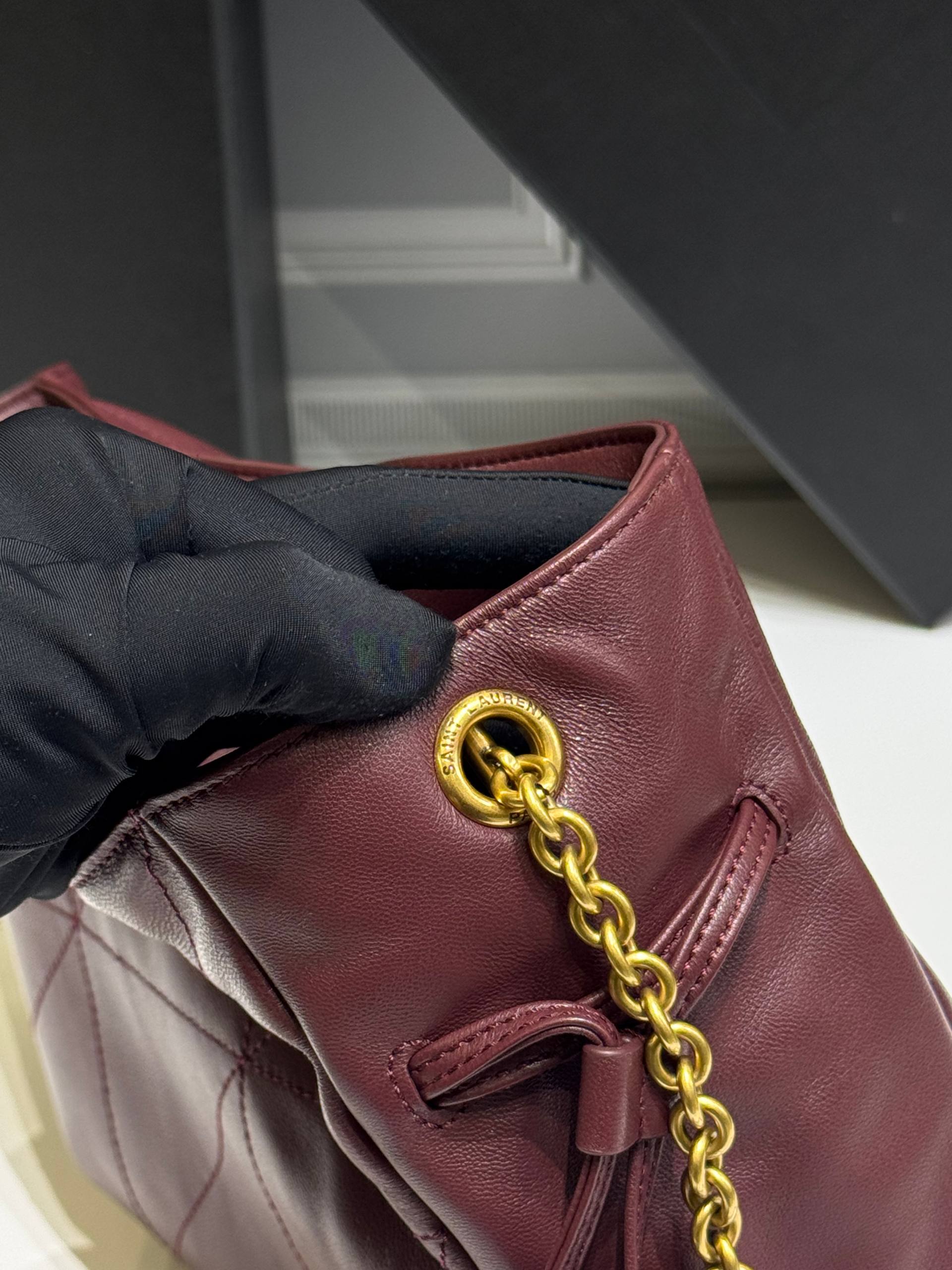 Версия JAMIE из мягкой наппа, украшенная строчкой CASSANDRE и CARRÉ RIVE GAUCHE. Эта легкая и простая сумка имеет цепной ремень и съемный карман на молнии. Цепочка и завязки на шнурке позволяют затягивать или расширять стороны, создавая различные силуэты.