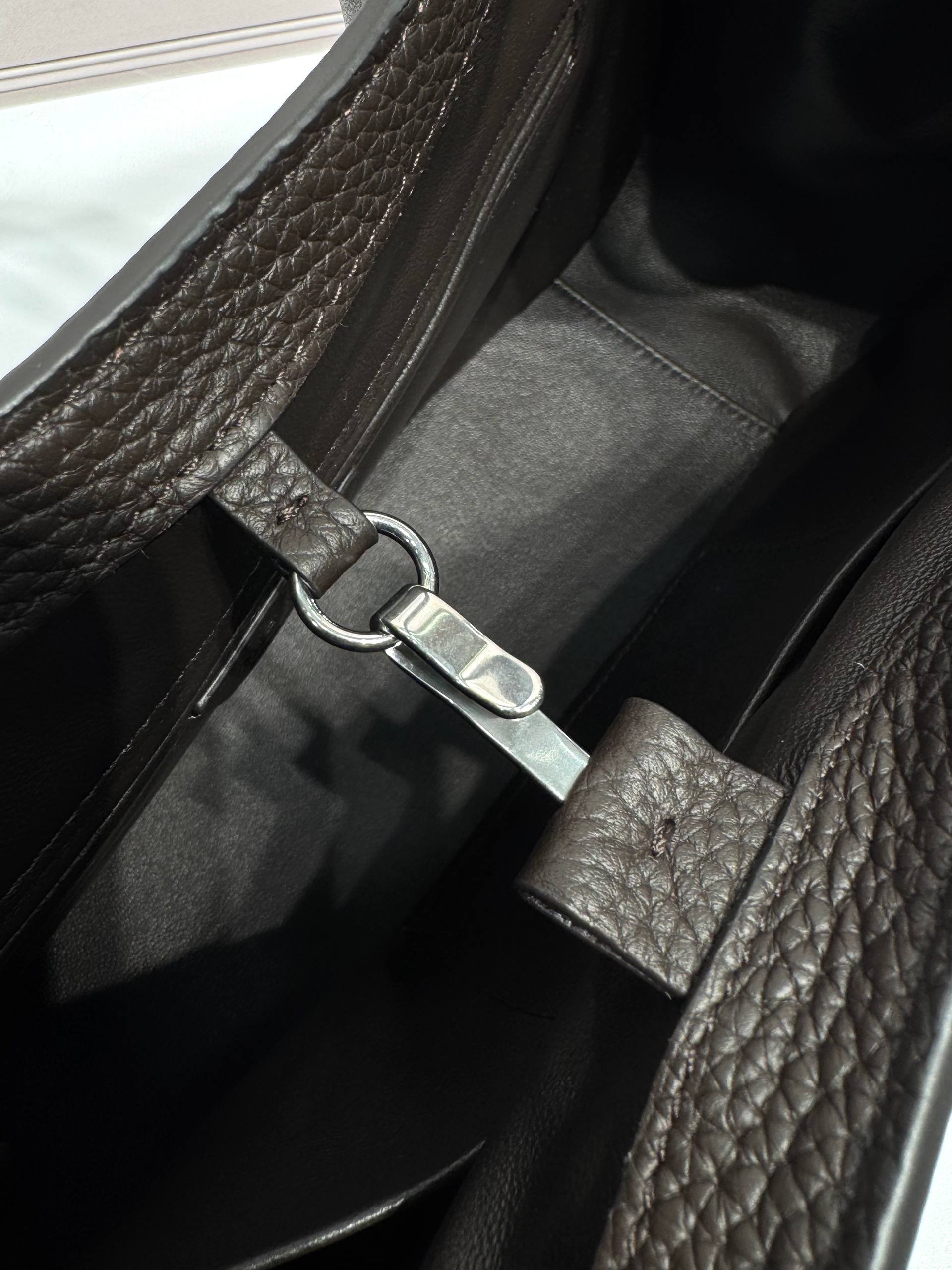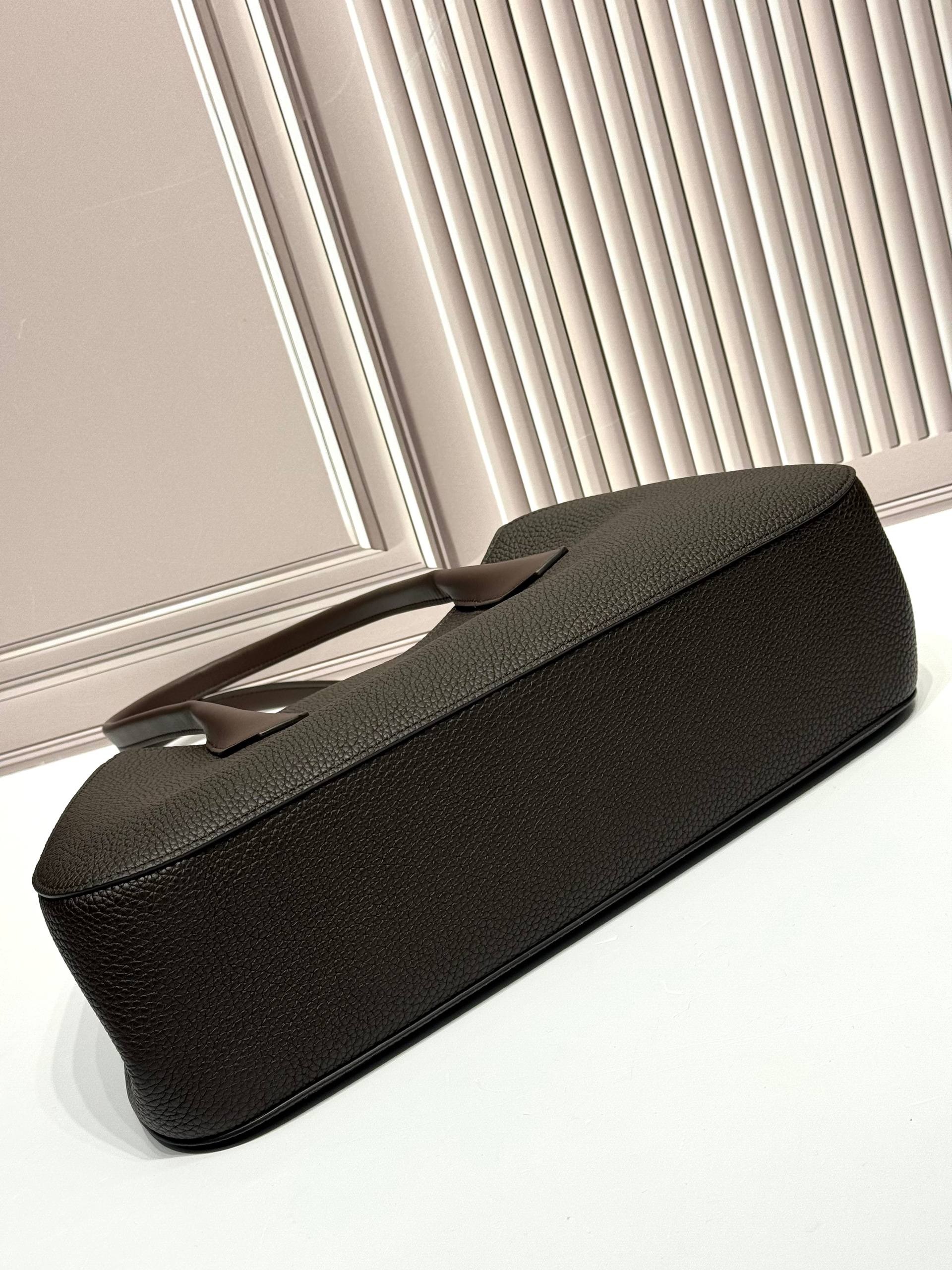 Сумка Marlo из зернистой кожи со структурированным силуэтом. Модель отличается выразительными трубчатыми ручками и эластичными боковыми вставками, которые придают объём и глубину дизайну. Зернистая поверхность подчёркивает игру света, сохраняя при этом элегантную пластичность. Благодаря продуманной конструкции, сумка сохраняет форму, оставаясь исключительно удобной в носке, и легко дополняет как повседневные, так и вечерние образы своей сдержанной выразительностью.